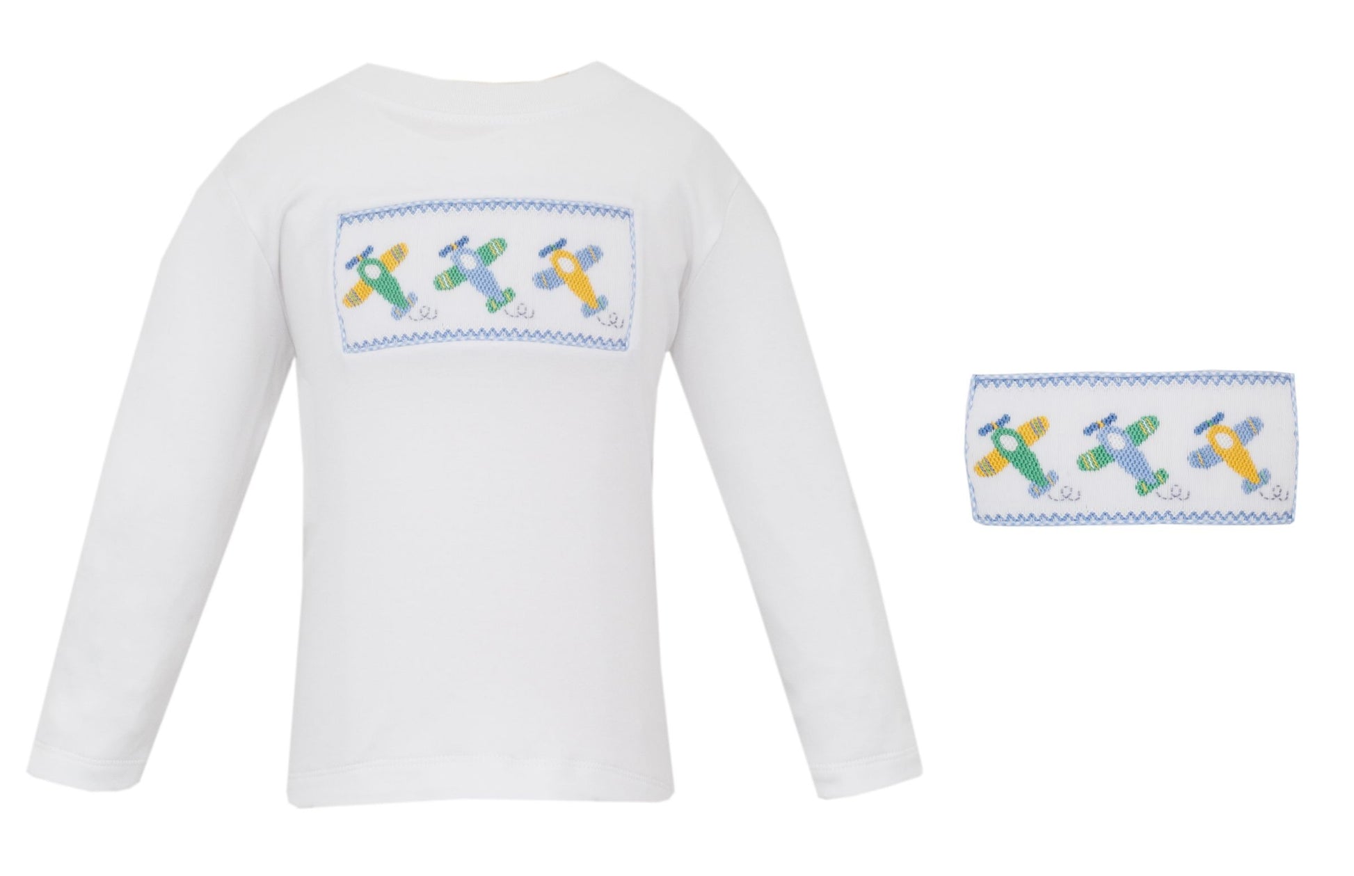 This playful long-sleeve t-shirt is a must-have for any little boy’s wardrobe. Featuring charming airplane smocking, it combines comfort with a touch of adventure. Perfect for everyday wear, its soft knit fabric keeps your child cozy while sparking imagination and fun.