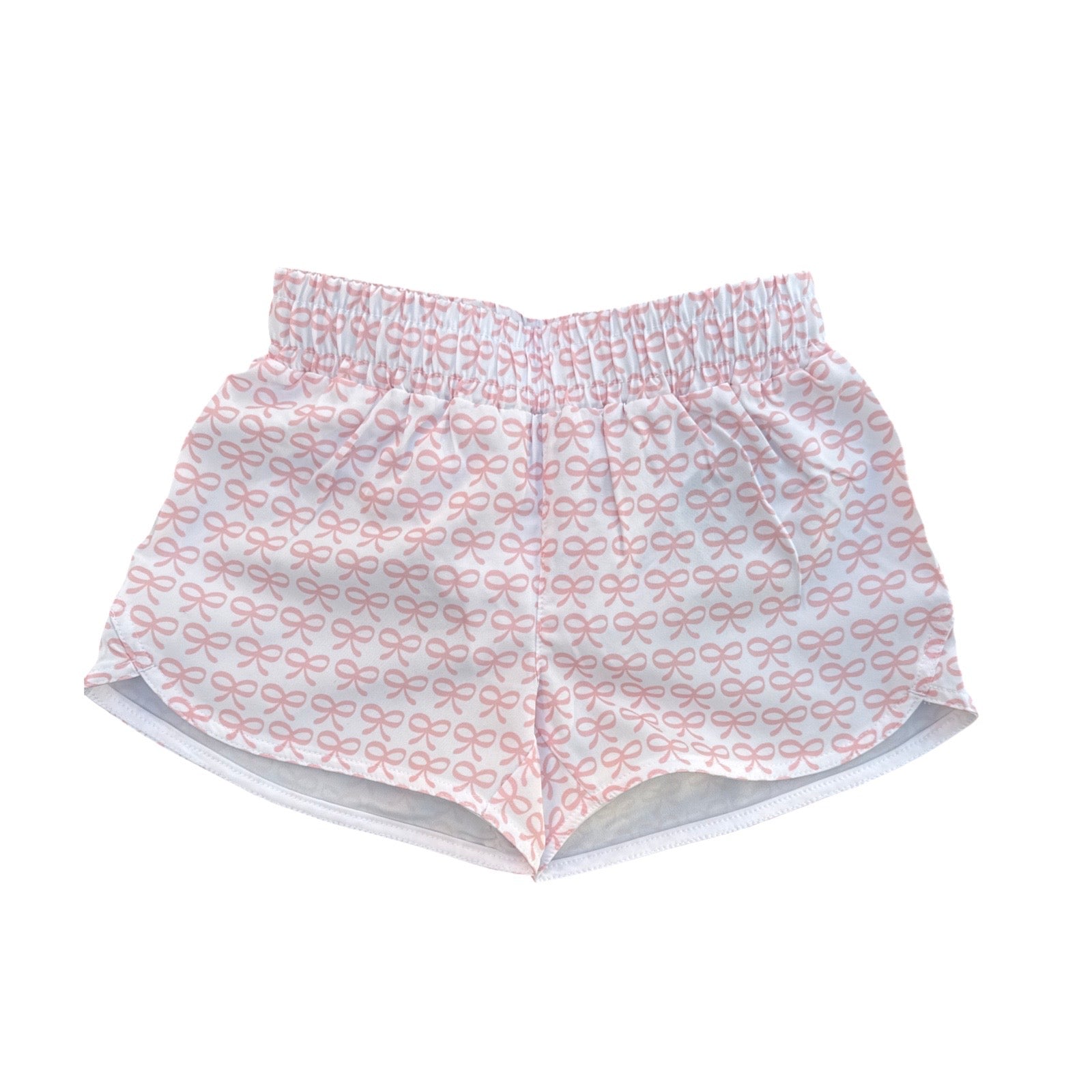 These athleisure shorts feature a charming bow print perfect for playful days. Designed for comfort and style, they pair effortlessly with the coordinating long sleeve top to create a fresh, lively outfit that's as fun as it is cozy.