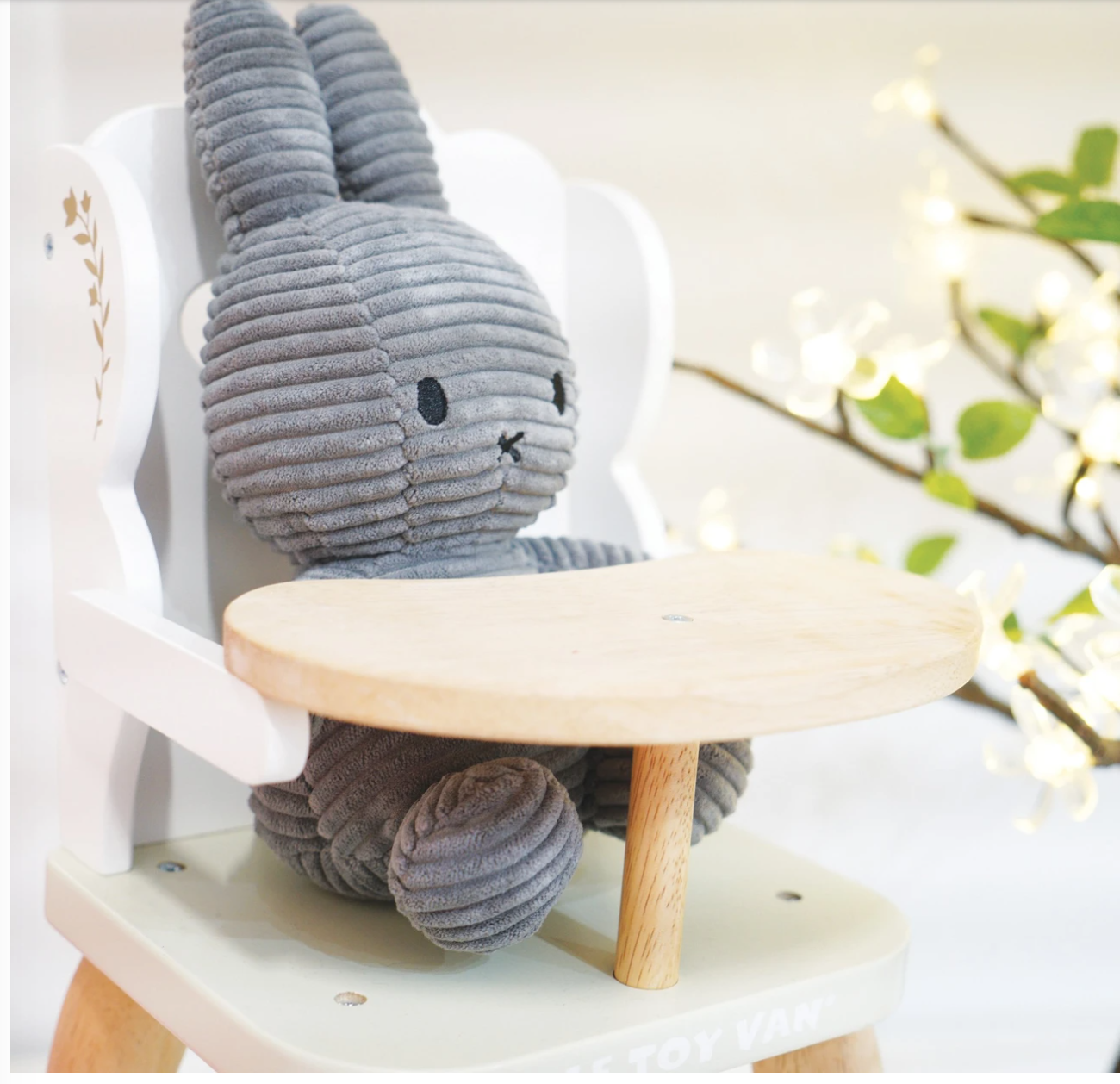 A vintage style high chair with 'turned' wooden legs to give immense charm. Scaled for dolls and soft toys 12-14".