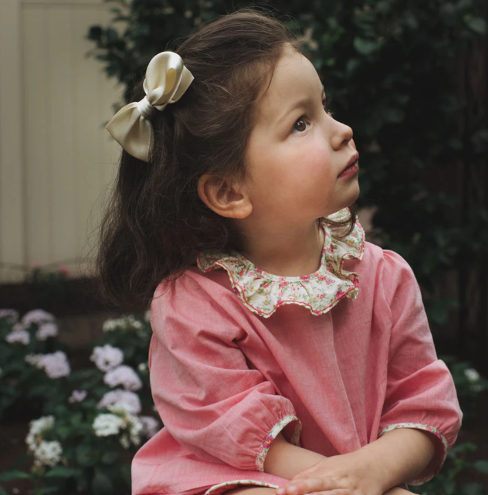 A classic and elegant bow in a high standard European satin ribbon. This bow gives a glamorous touch to your daughter's outfits. From a birthday party dress or a smocked dress to a princess costume or a wedding celebration.