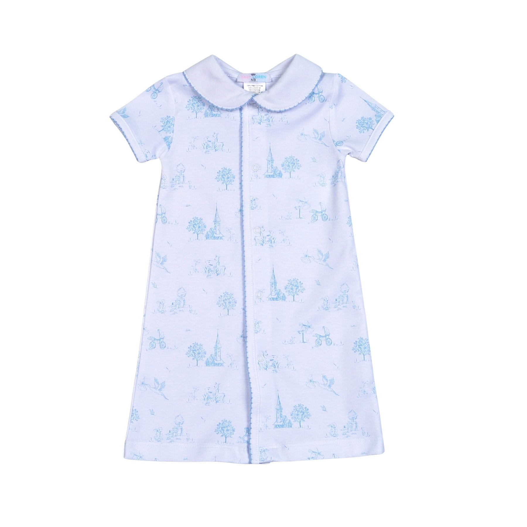 Wrap your little one in pure charm with this Baby Toile Pima Baby Gown. In the softest pale white, it features an adorable blue toile print and a classic collar that’s as sweet as a storybook. Perfect for cozy days and dreamy naps, this gown combines gentle comfort with playful style for your tiny treasure.