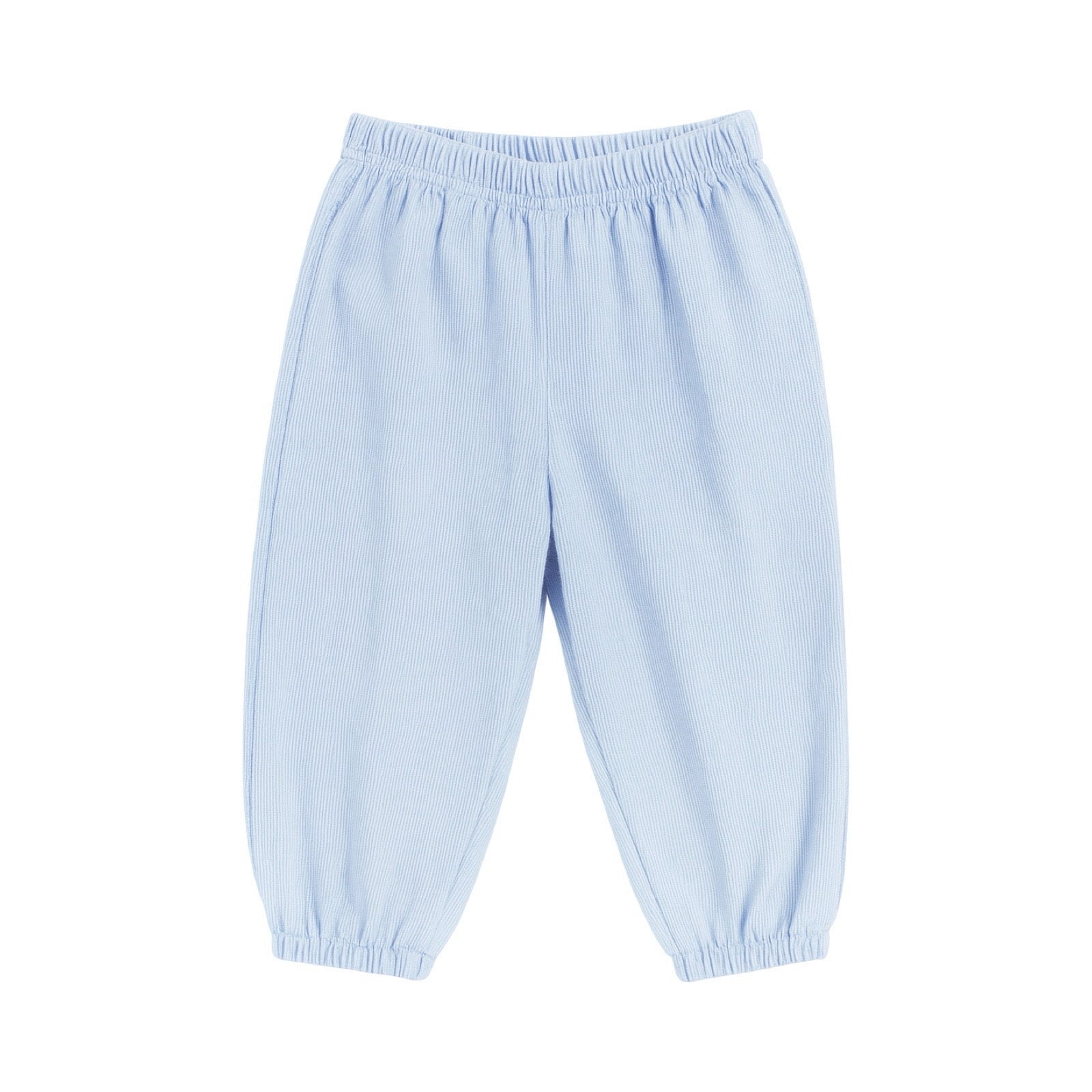 Love this classic little pant for your littles on the go. Crafted from corduroy, they feature an elastic waist and elastic cinched ankles so your little one will be ready to play in style. These sky blue colored bloomer pants are perfect for any active boy's wardrobe – just add imagination!