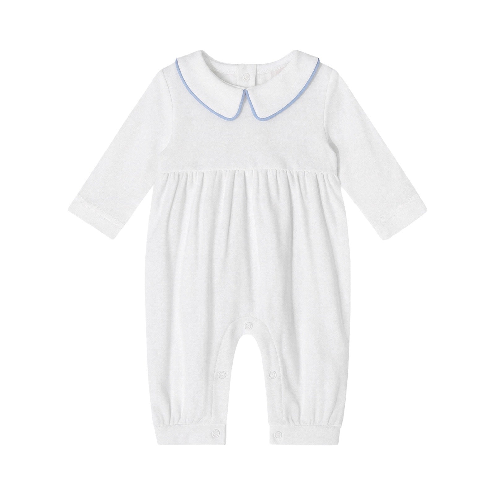 Dress your little one in cozy charm with the Everyday Piped Playsuit—a delightful choice for those early days. Its soft fabric keeps baby comfy, while the cute piping adds a touch of playful style. Even sweeter with a custom monogram, this playsuit makes every moment extra special and snug.