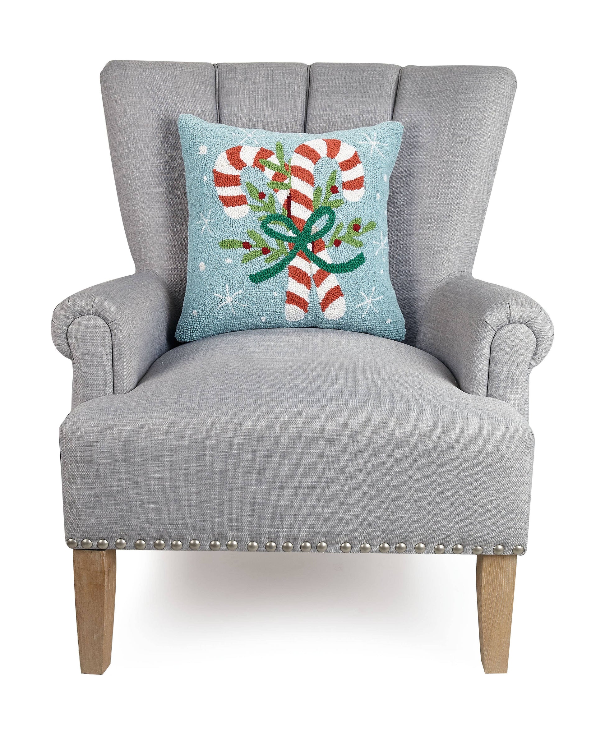 The little details: Measures 16" x16″. Wool hooked design with velvet backing and zipper closure. Includes a polyester insert.