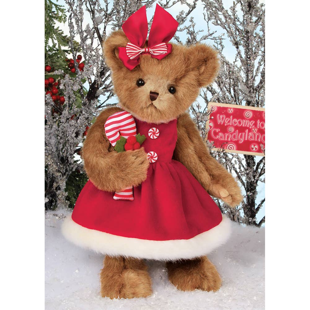 The Christa Cane: a darling stuffed animal bear for kiddos, dressed up in a festive Christmas outfit complete with a candy cane. The perfect cuddly companion for the holiday season, bring joy and laughter to your little ones with this playful addition to their toy collection!