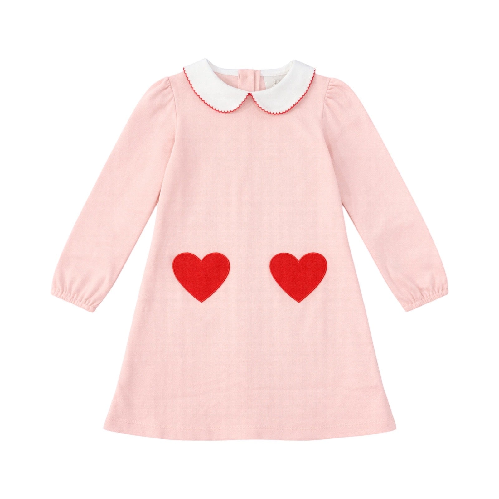 Adorable hearts steal the show on this charming Collins Dress, complete with appliqué pockets that spark imagination and delight. Perfect for Valentine's Day celebrations or everyday wear, the playful heart details add a touch of whimsy while practical pockets keep little hands happy. A dress that celebrates joy in every stitch.