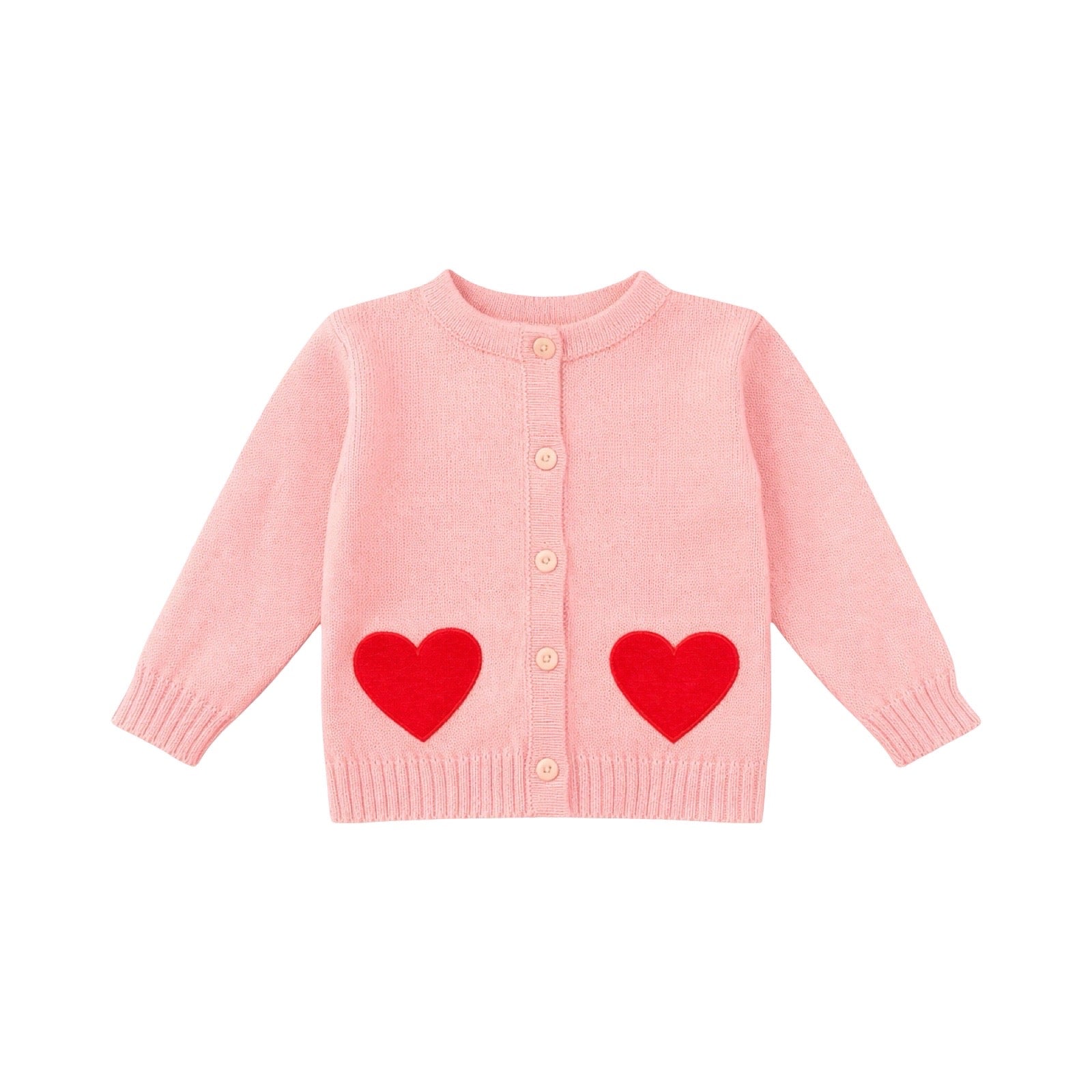 Wrap your little one in the cozy charm of this adorable pink cotton cardigan, dotted with sweet heart pockets. Soft and playful, it’s perfect for keeping her comfortable while adding a playful touch to any outfit.