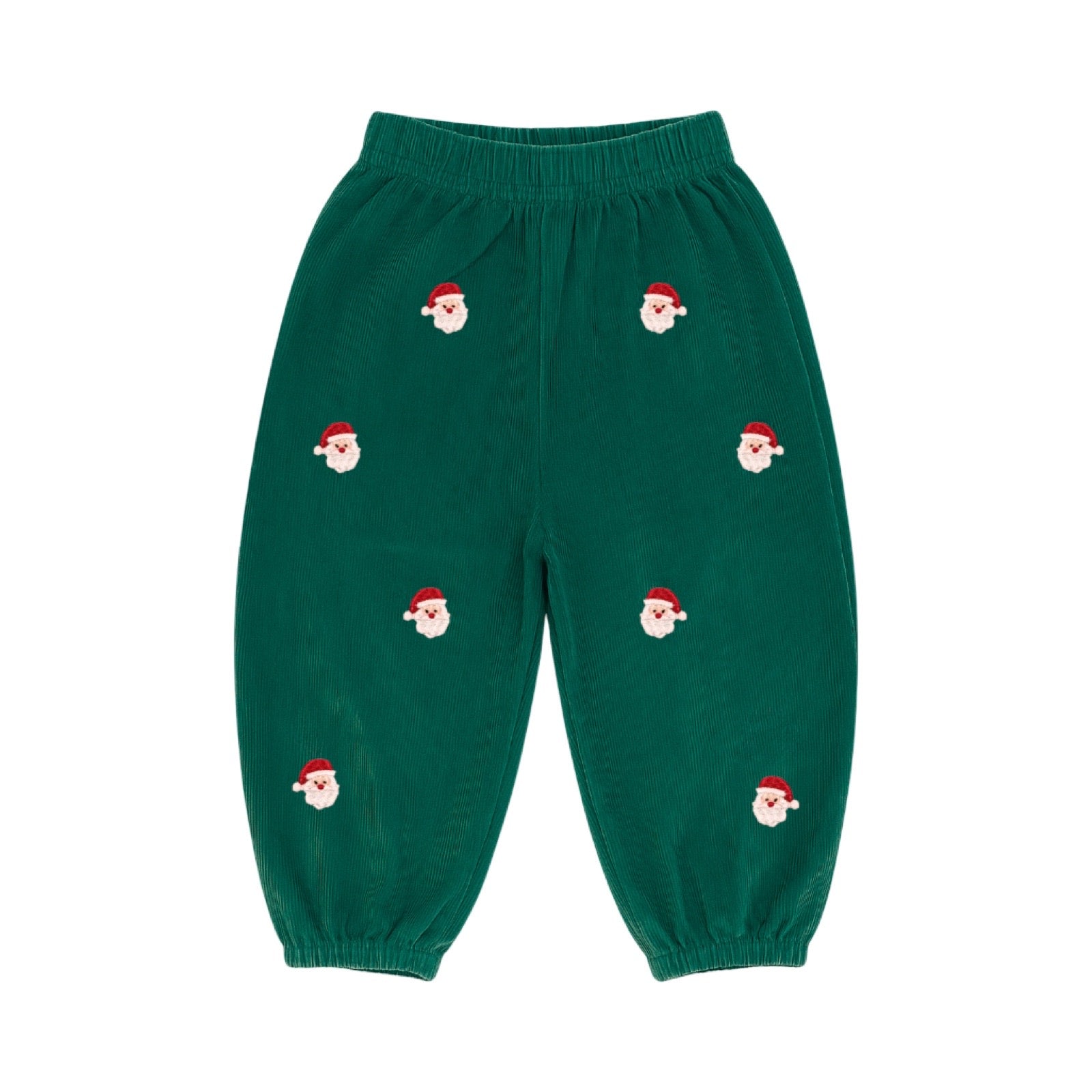 These hunter green corduroy bloomer pants are sprinkled with jolly Santas, making them the cutest pick for your little one. Soft and comfy, they pair perfectly with the Long Sleeve Polo with Santa to create an outfit that’s as playful as it is stylish. Ideal for everyday adventures or cozy days at home!