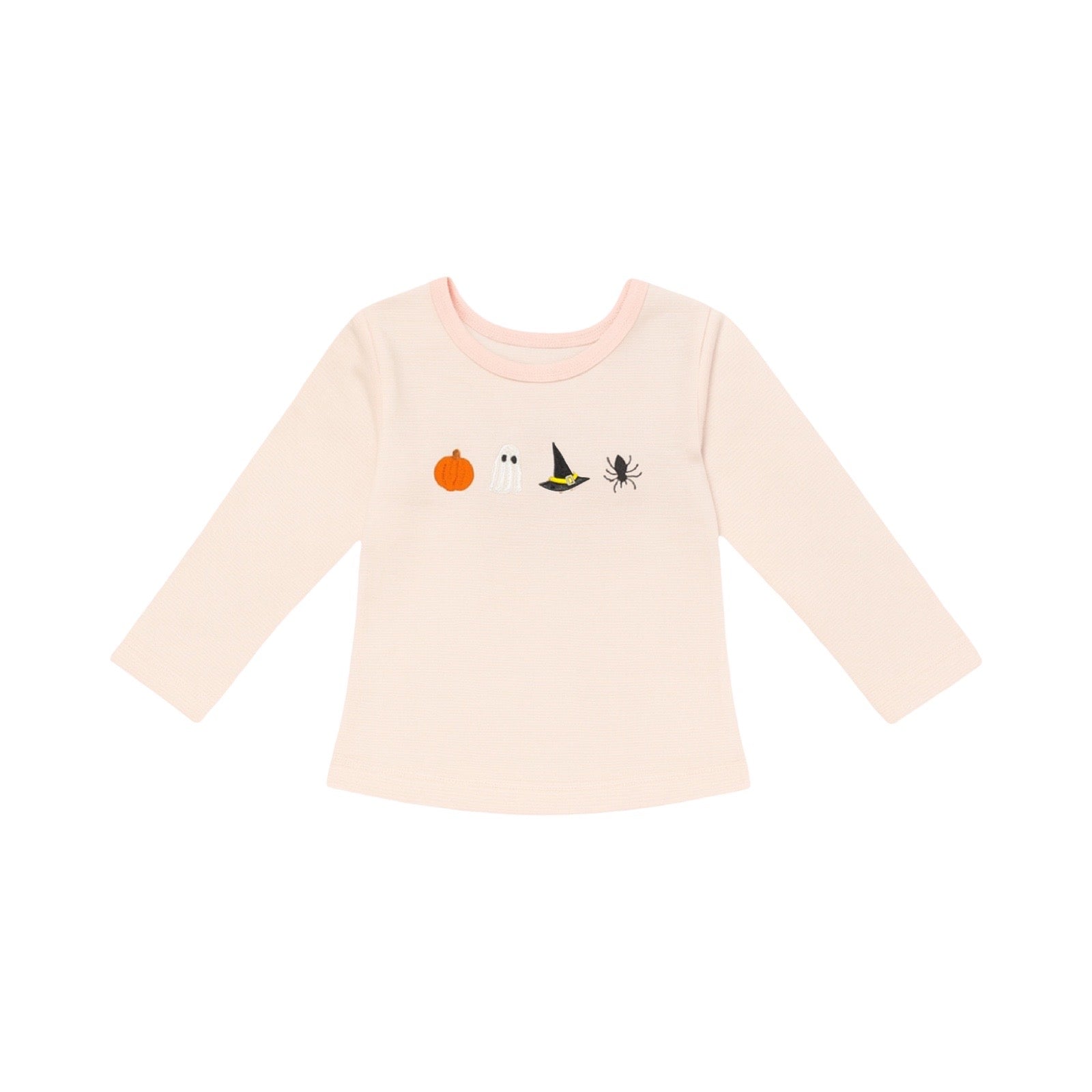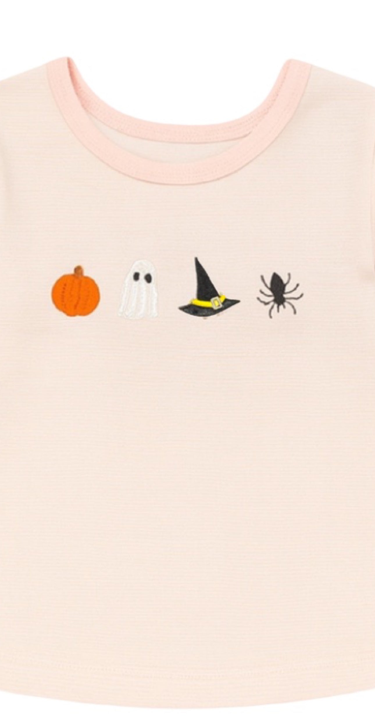 Add a spooky twist to cozy style with this classic pink and white striped long sleeve tee. Featuring four charming Halloween-themed embroidered designs, it’s the perfect playful pick for fall fun. Soft, comfortable, and festive, this tee brings a dash of seasonal charm to everyday wear.