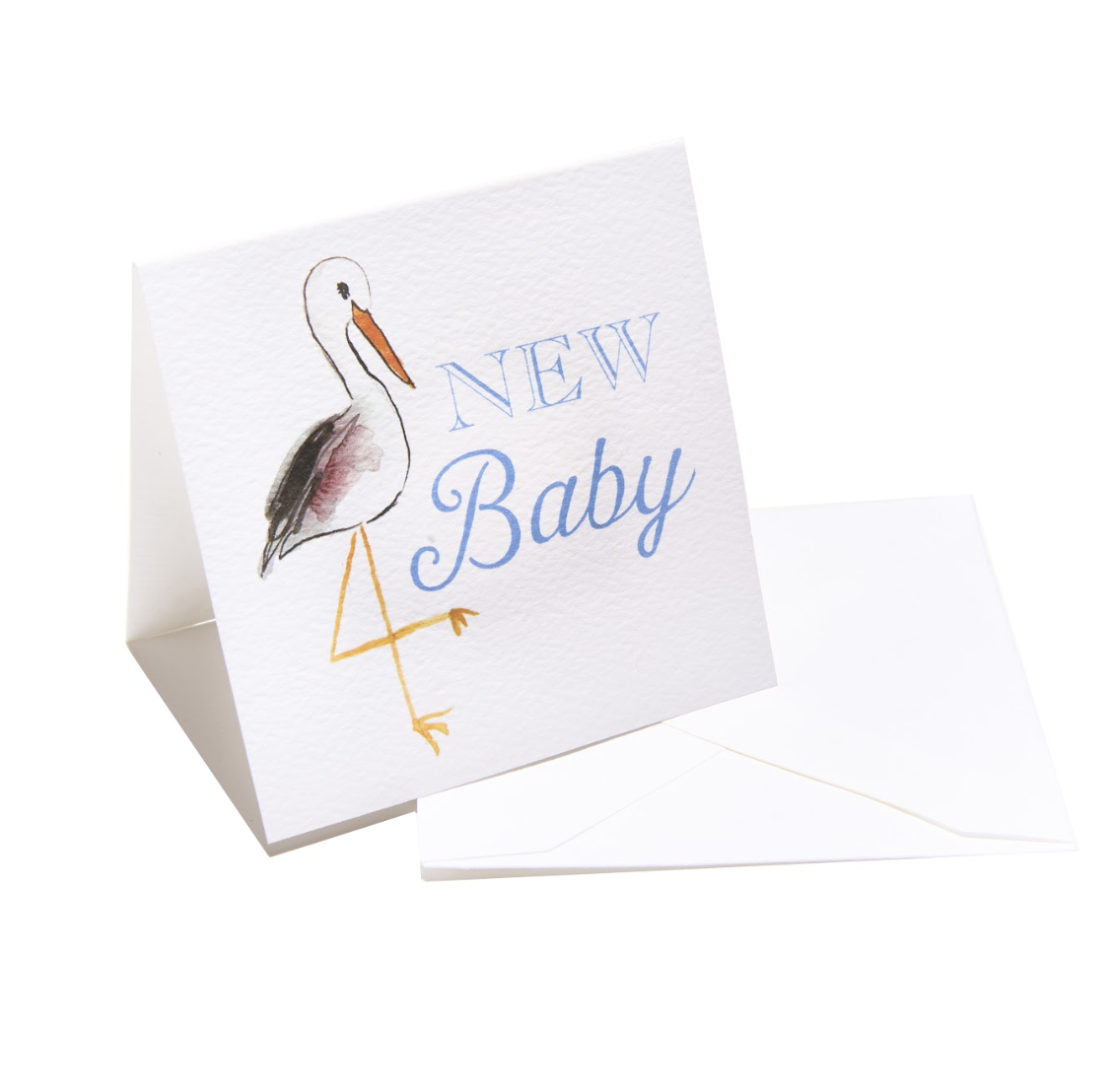 This adorable stork is the perfect way to celebrate a new baby boy. Illustrated with watercolor and printed on premium felted paper.