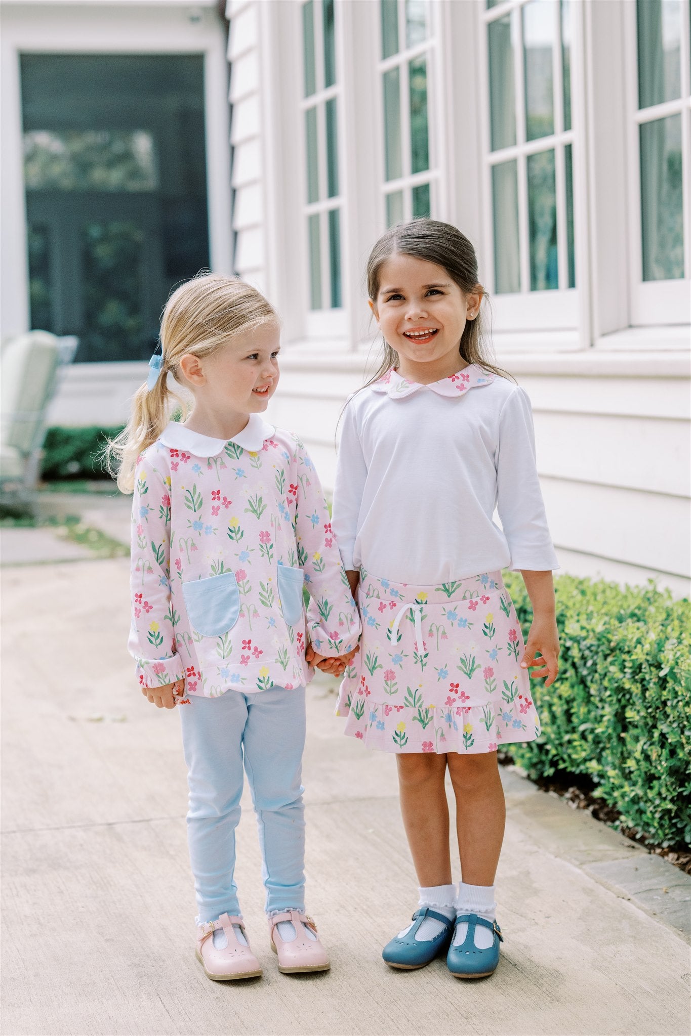 Add a touch of whimsy with this darling ruffled skirt featuring a charming English garden floral print. The playful ruffles dance with every step, making it perfect for sunny days and joyful occasions. Lightweight and breezy, it keeps your little one comfortable while spreading floral delight wherever they go.