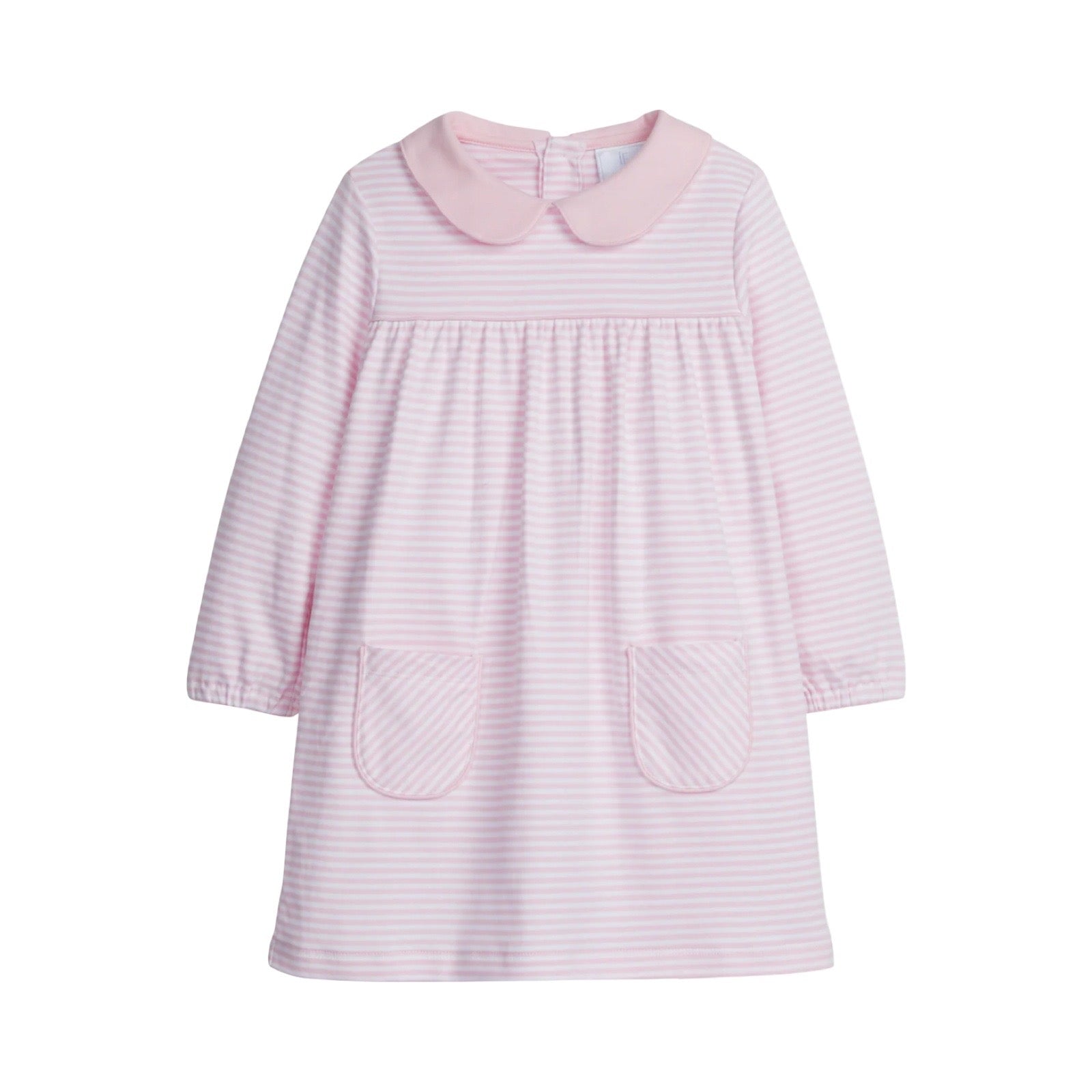 Your little girl can throw on our Evelyn Dress with ease and be cute and comfortable for play time! With a sweet Peter Pan collar and two front pockets, this classic light pink striped dress is ready for whatever the day has in store. Who doesn’t love a little girl in pink?