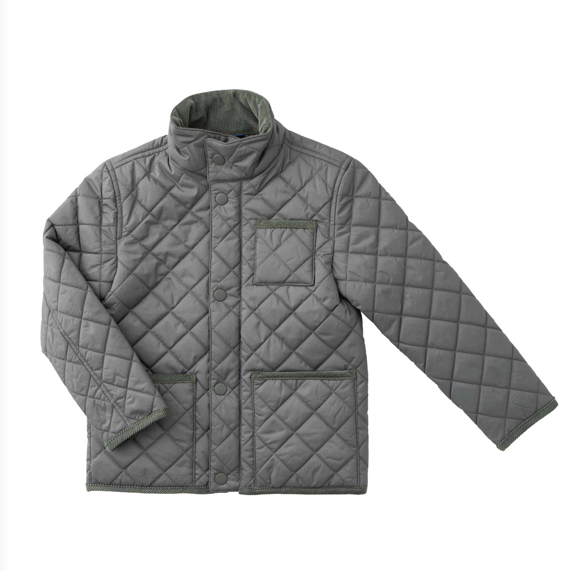 For the kid who loves wide-open spaces and muddy adventures, the Fly Fishing Kids Quilted Barn Jacket in Fly Fishing Green is a countryside classic reimagined for modern explorers. With a tailored fit, diamond-quilted finish, and rugged details, this jacket offers cozy warmth and timeless style. It features three functional pockets for hands, treasures, or snacks, and a snap plus zip closure for secure comfort. Perfect for pumpkin patches or pasture play, it keeps kids warm and ready for any adventure.