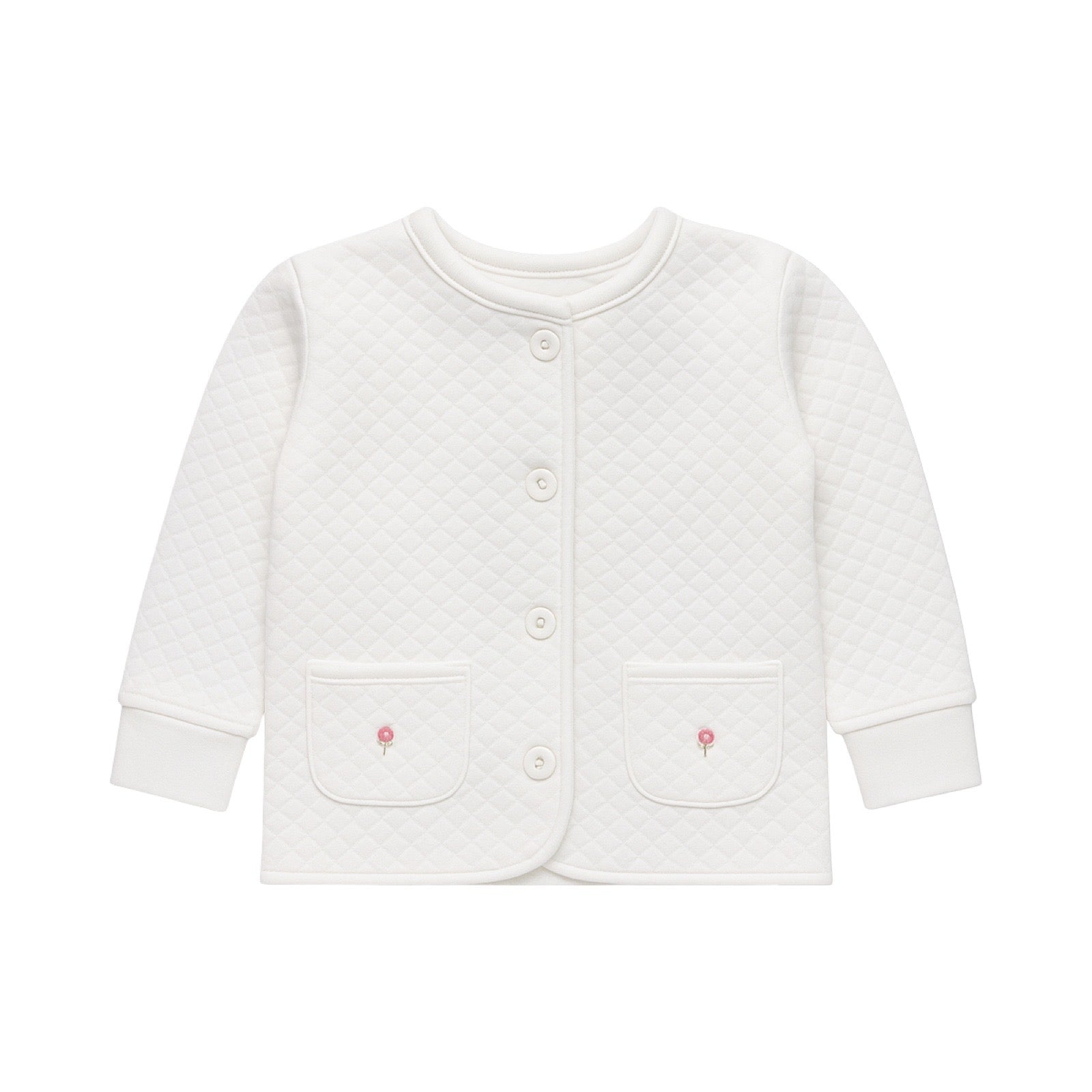 This adorable quilted jacket is the sweetest way to keep her cozy and stylish. Featuring cute buttons and handy pockets adorned with charming embroidered rosebuds, it’s perfect for adding a touch of floral fun to chilly days. Soft, warm, and full of playful details she’ll love!