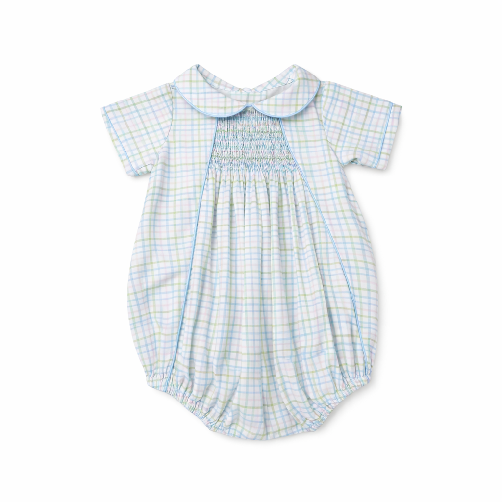 Introducing the Graham Bubble in Hobbs Check—a springtime essential that captures the charm of classic children's style. This delightful bubble features a soft pastel plaid print and a sweet Peter Pan collar, making it the perfect companion piece for coordinating with our short set and button-down. Ideal for Easter celebrations and warm-weather adventures, this bubble combines timeless design with modern comfort. Dress it up or down for effortless spring style.