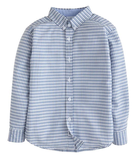 Button Down Shirt, Gray Blue Gingham