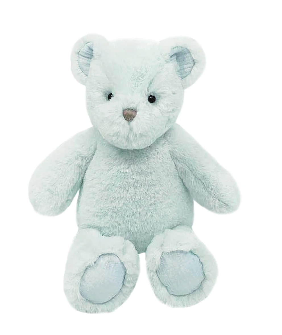 How darling is this little blue bear! Made from a deliciously soft fur with soft cotton muslin feet and ear accents he is sure to be a treasured friend for years to come.