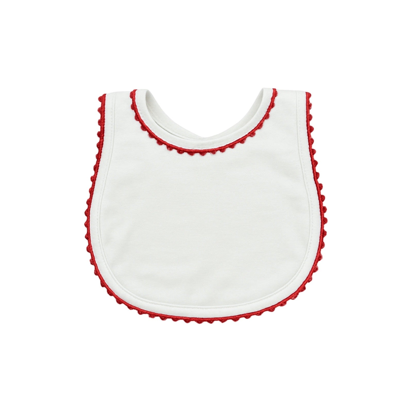This adorable red trimmed bib will protects baby's clothes from spills, drools or other mishaps all holiday season.