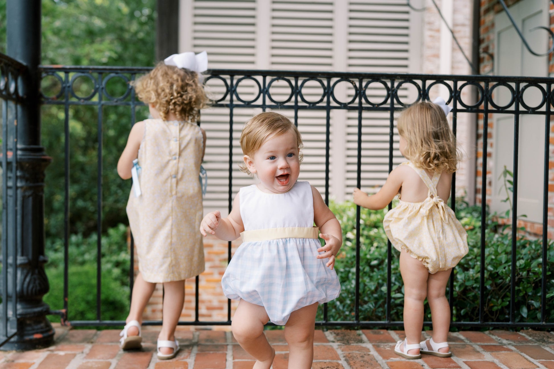 Adorable bubble romper featuring a charming blue buffalo check pattern with cheerful yellow piping and waist trim. This sweet one-piece is perfect for little ones and includes a prime spot for adding a personalized monogram. Ideal for playdates, family photos, or everyday adventures in style.