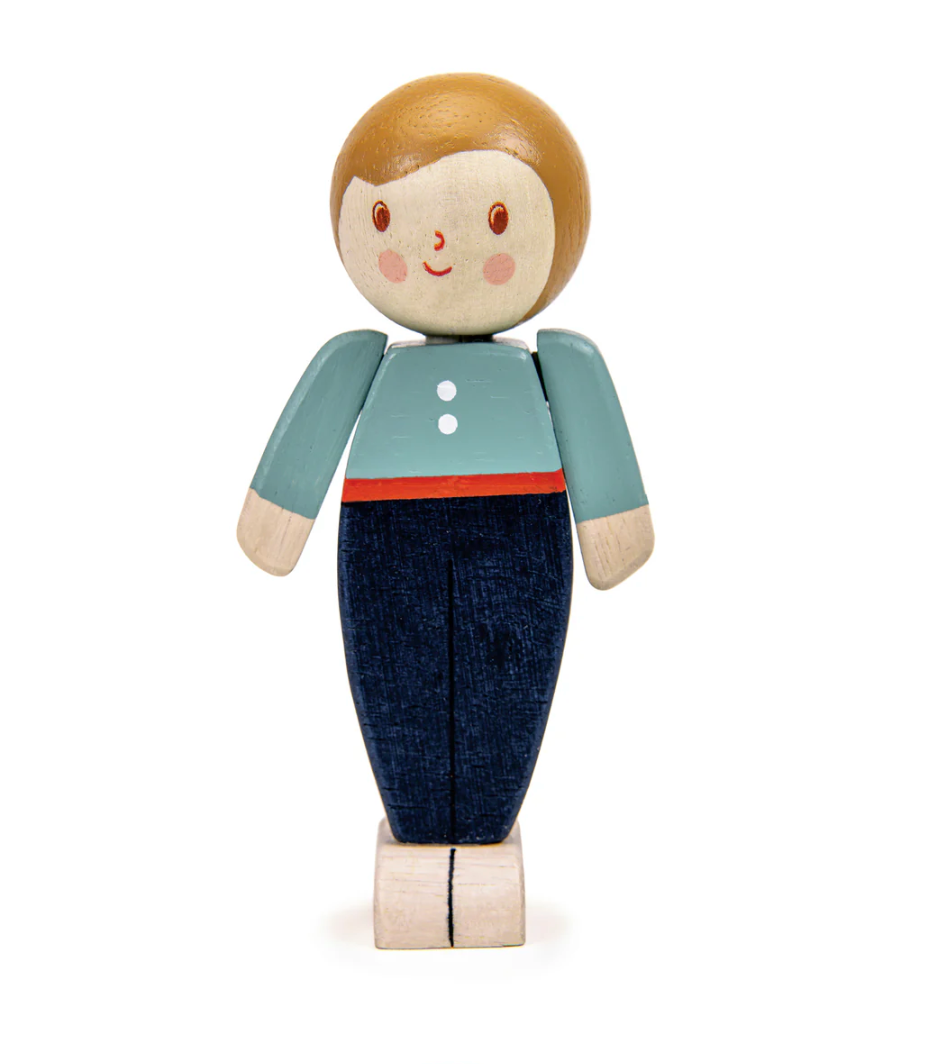Made from beautiful, sustainably sourced rubberwood, these dolls have articulated arms, and pretty painted faces.