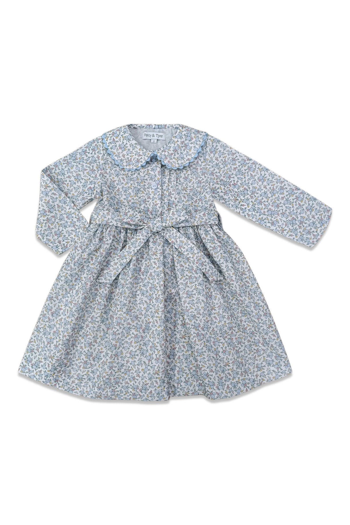 Step into sunshine with the Jane Dress, a playful blue floral shirt dress featuring a charming collar and a front tie that adds a flirty touch. Its breezy design and vibrant pattern make it perfect for twirling through warm days or casual outings with a splash of fun.