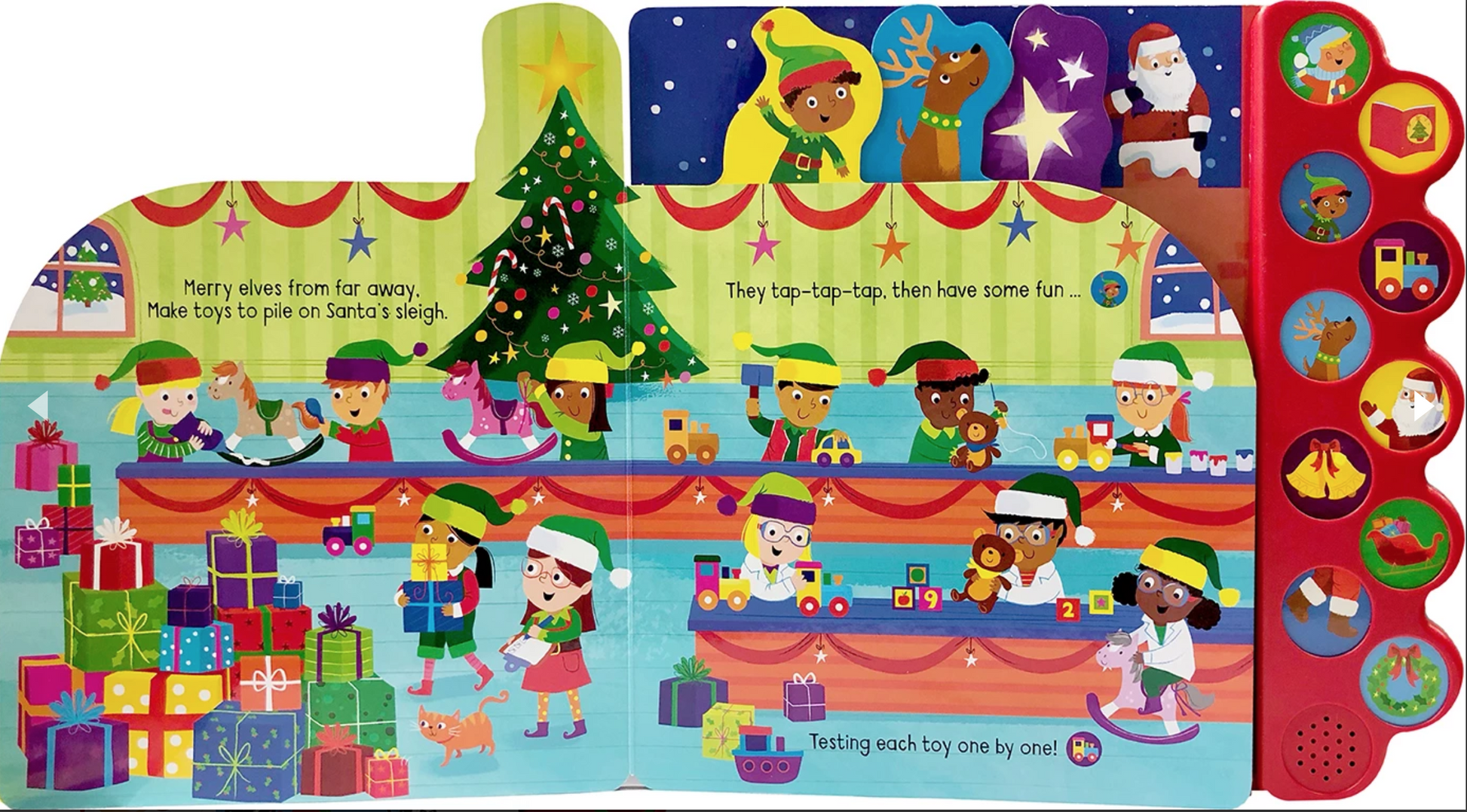 Let's celebrate Christmas together with Jolly Jingle Christmas! Visit the elves at their workshop as they tap and tinker with toys. Hear the jingle, jingle of sleigh bells approaching... Sweet text by Becky Wilson, charming illustrations by Samantha Meredith, and interactive sounds make this the perfect book to snuggle up with this winter. Little hands will love turning the sturdy page tabs and choosing from the 10 sounds provided to bring the festive scenes to life!