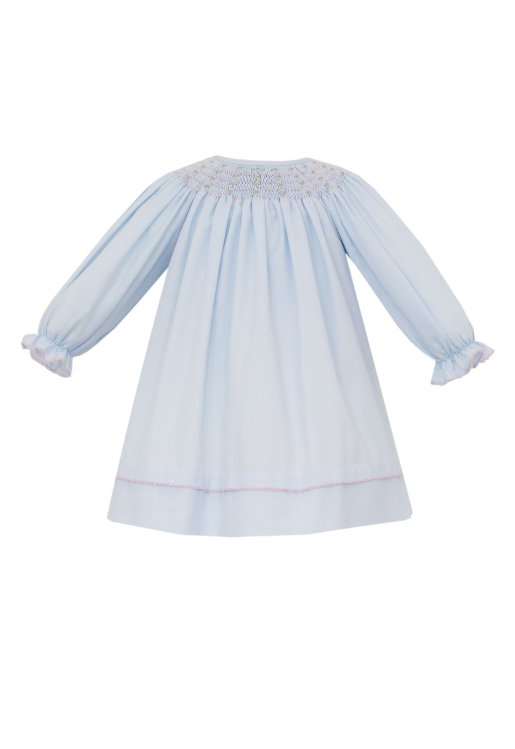 This delightful Kaylee Viyella Bishop Dress in soft blue is adorned with gentle pink smocking and a timeless Peter Pan collar. Crafted for comfort and charm, it brings a playful spirit to your little one’s day, whether at a special event or exploring the world around them.