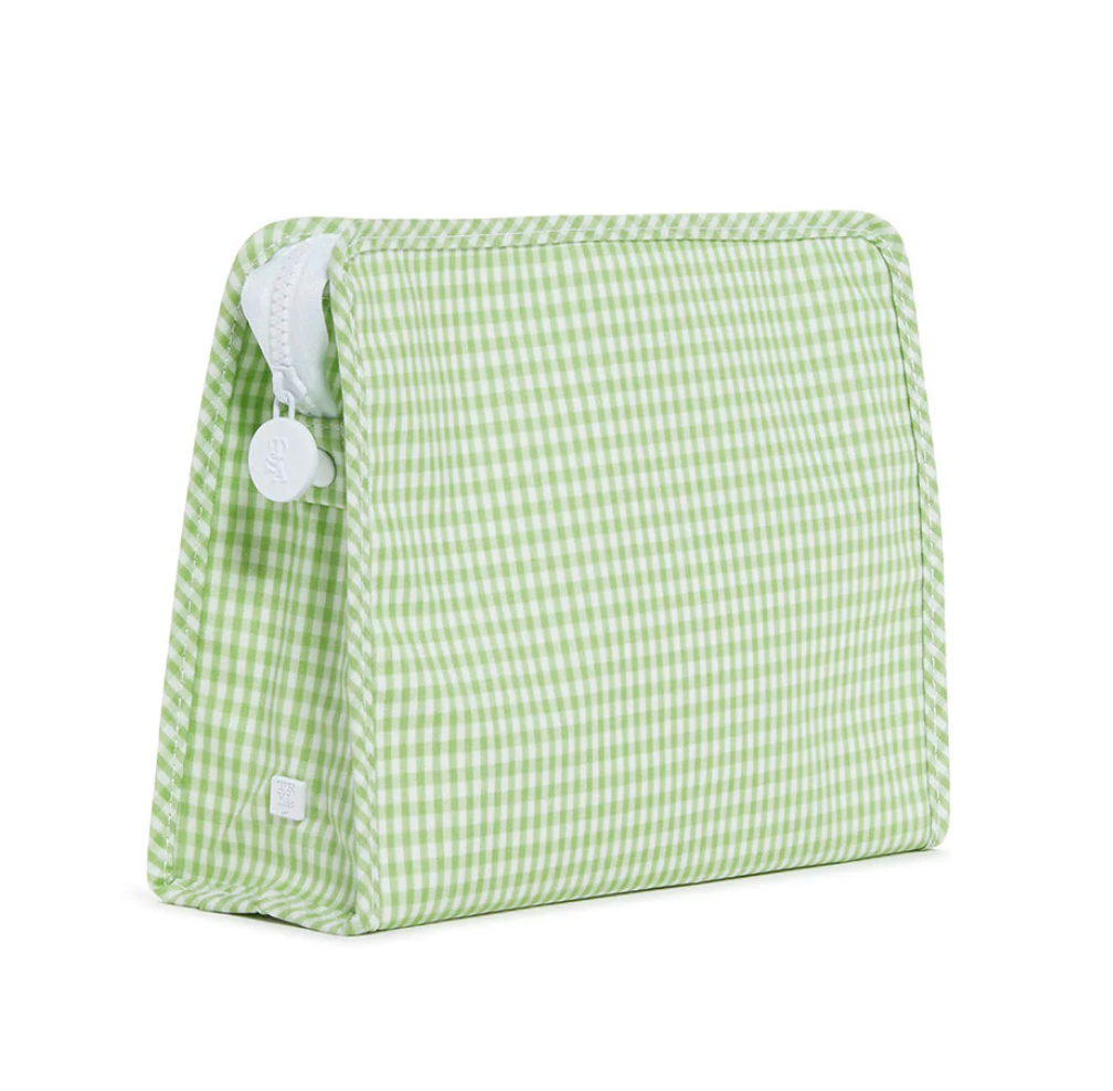 Large Roadie Zip Pouch, Gingham Leaf Green