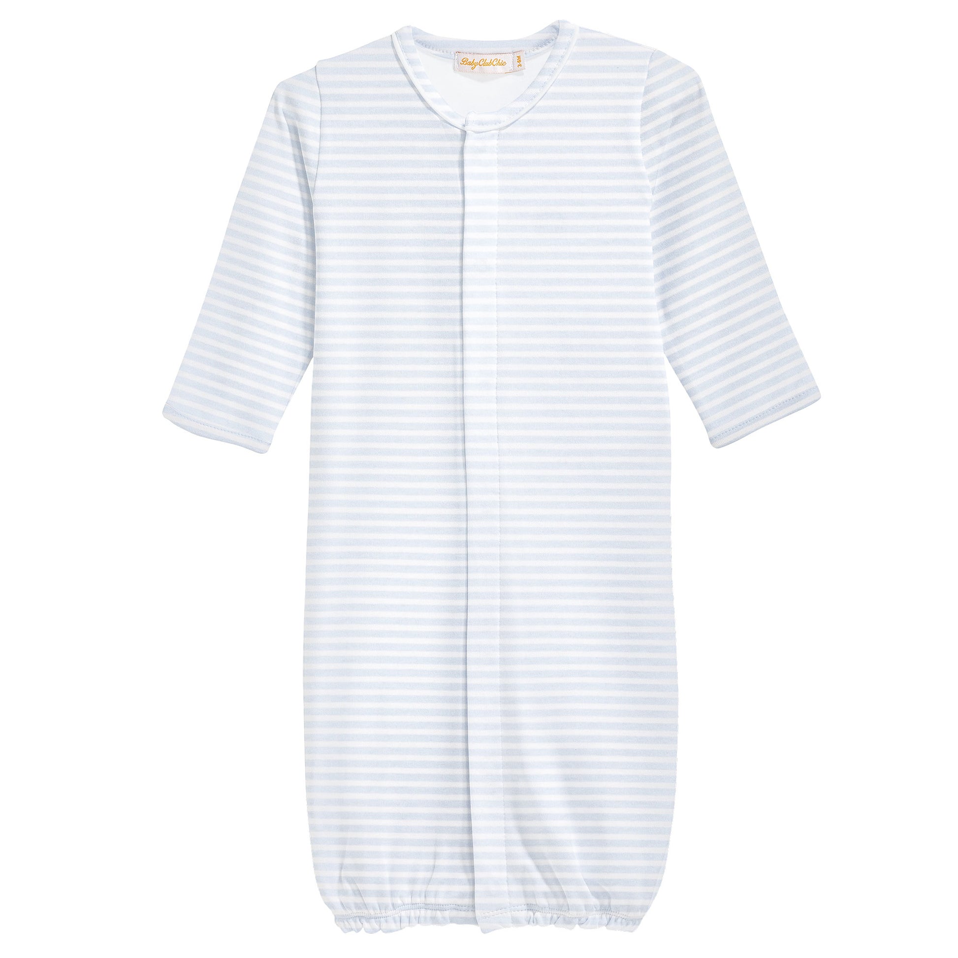This two in one converter in playful stripe print goes from gown to playsuit in just a few snaps.