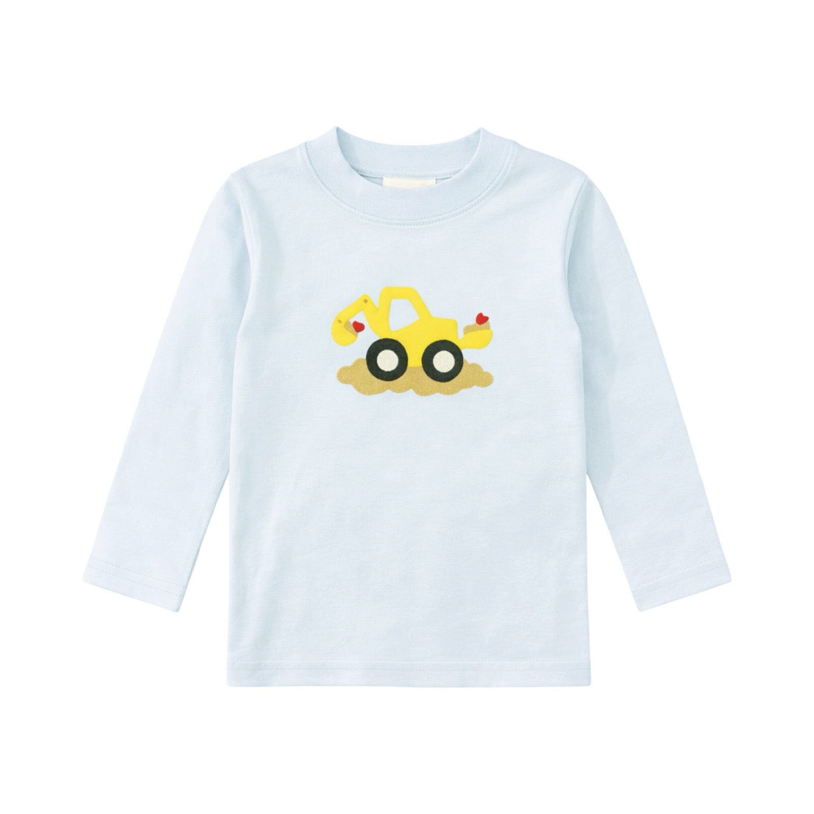 This playful long sleeve tee features a bright yellow digger applique scooping up hearts—perfect for little builders and dreamers. The soft blue base pairs beautifully with the cheerful design, creating a look that's both fun and timeless. Made for comfort and durability, it's ideal for everyday adventures, playdates, or cozy layering. The long sleeves offer gentle coverage while the charming "Digging for Love" motif brings a smile to any outfit. A sweet addition to any child's wardrobe.