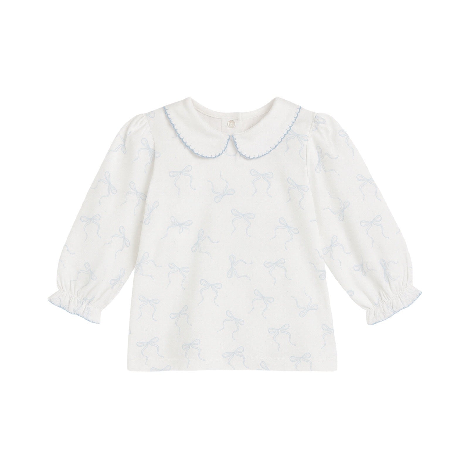 This darling printed cotton knit top is perfect for her everyday adventures. With charming puffed long sleeves and a Peter Pan collar, it adds a touch of whimsy to any outfit. The elastic cuffs create delicate ruffles with matching picot trim, making this shirt both adorable and comfortable for all-day fun.