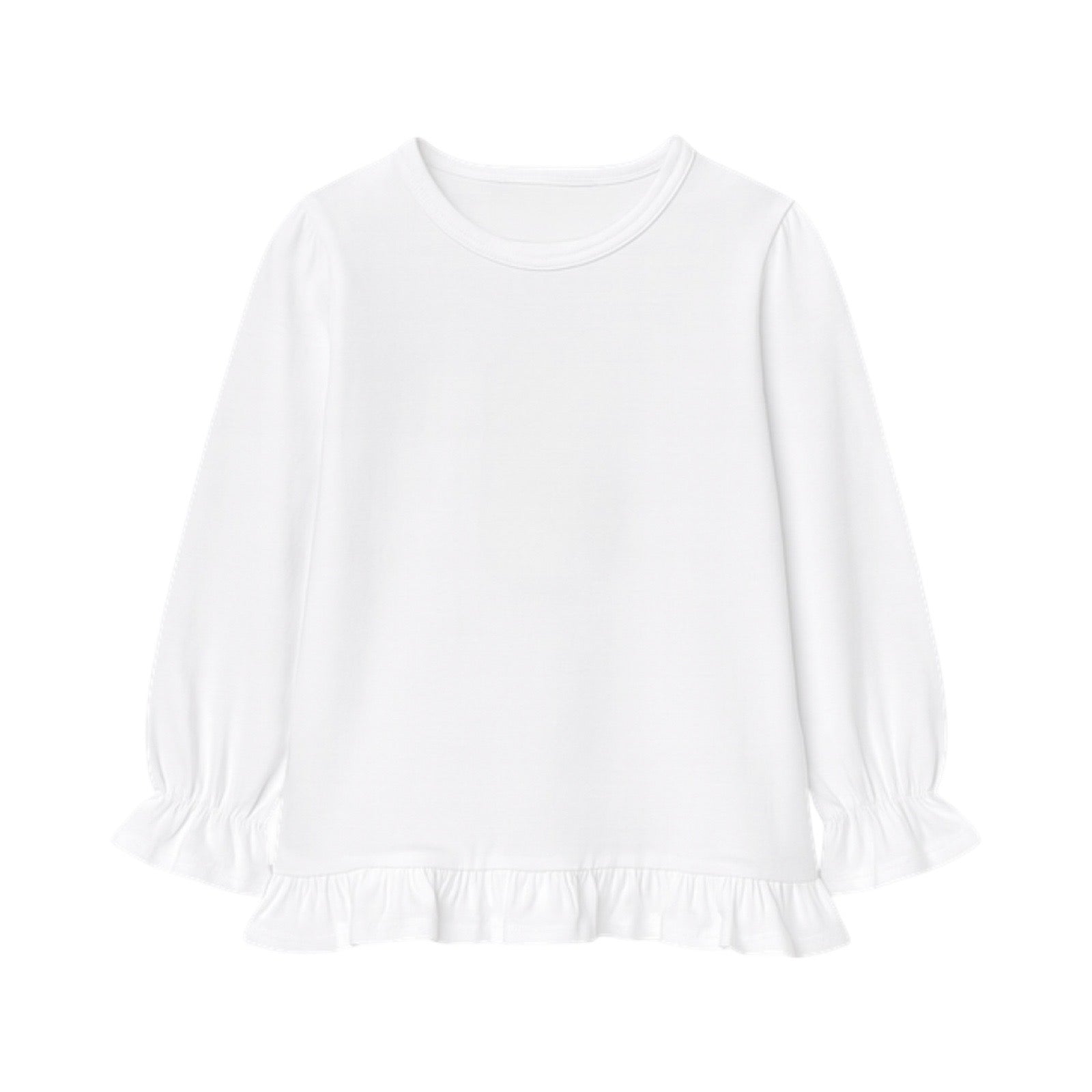 This sweet long sleeve swing top is made from soft, breathable cotton, perfect for all day comfort. Charming ruffles at the wrists and hem add a playful touch to this simple essential. Easy to pair with any of our leggings and easy to love!