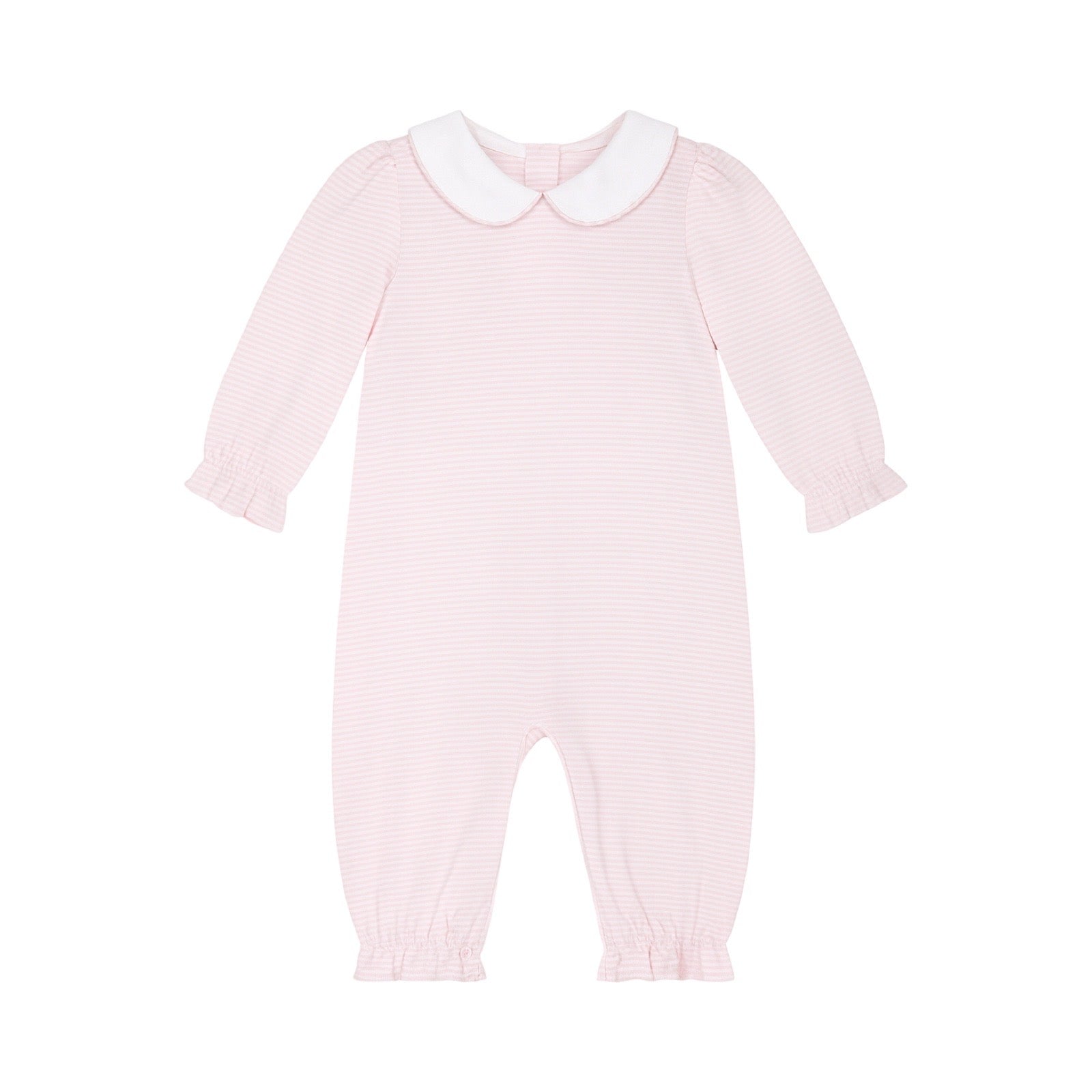 Made for tiny explorers, the Long Sleeve Louisa Striped Longall offers cozy comfort and easy movement with its soft fabric and playful stripes. Snaps at the legs and back of the neck make diaper changes and dressing a breeze, so your little one can focus on crawling and taking those first steps with joy. Perfect for busy days and sweet adventures!