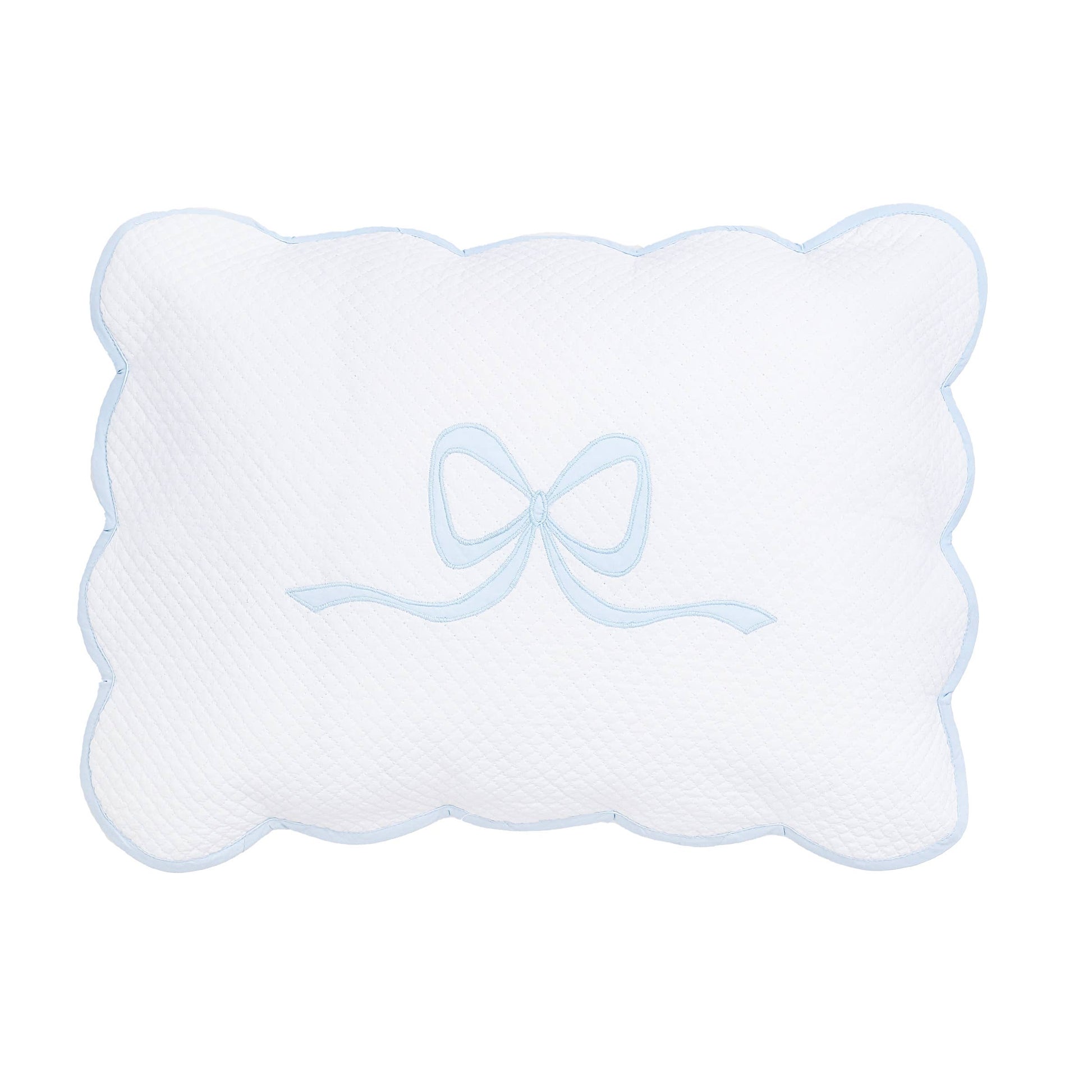 Crafted from 100% cotton quilted pique in white, this beautiful sham features scalloped tape trim and a charming hand-appliquéd bow.