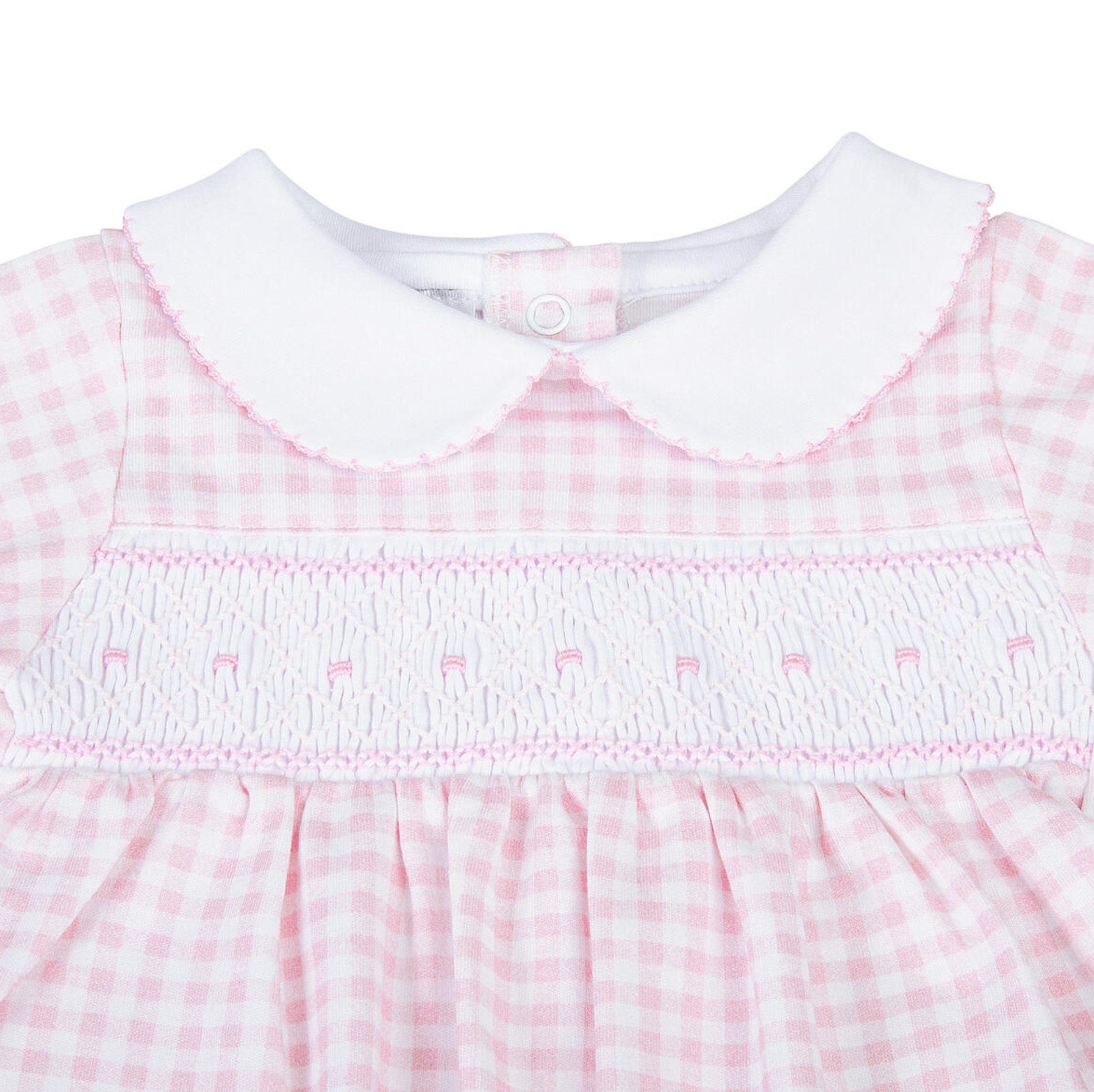 Mini Checks Pink Smocked Collared Girl Footie