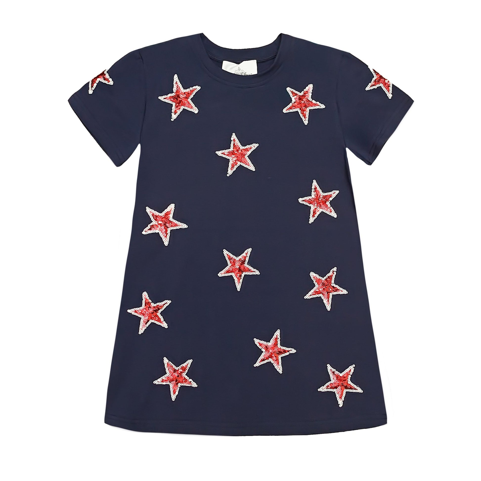 Sparkle and shine all night long in our Red and Black Star Dress! Perfect for a party or game day, this dress is adorned with sequin stars for a fun and playful touch. Be the star of the show in this eye-catching dress!