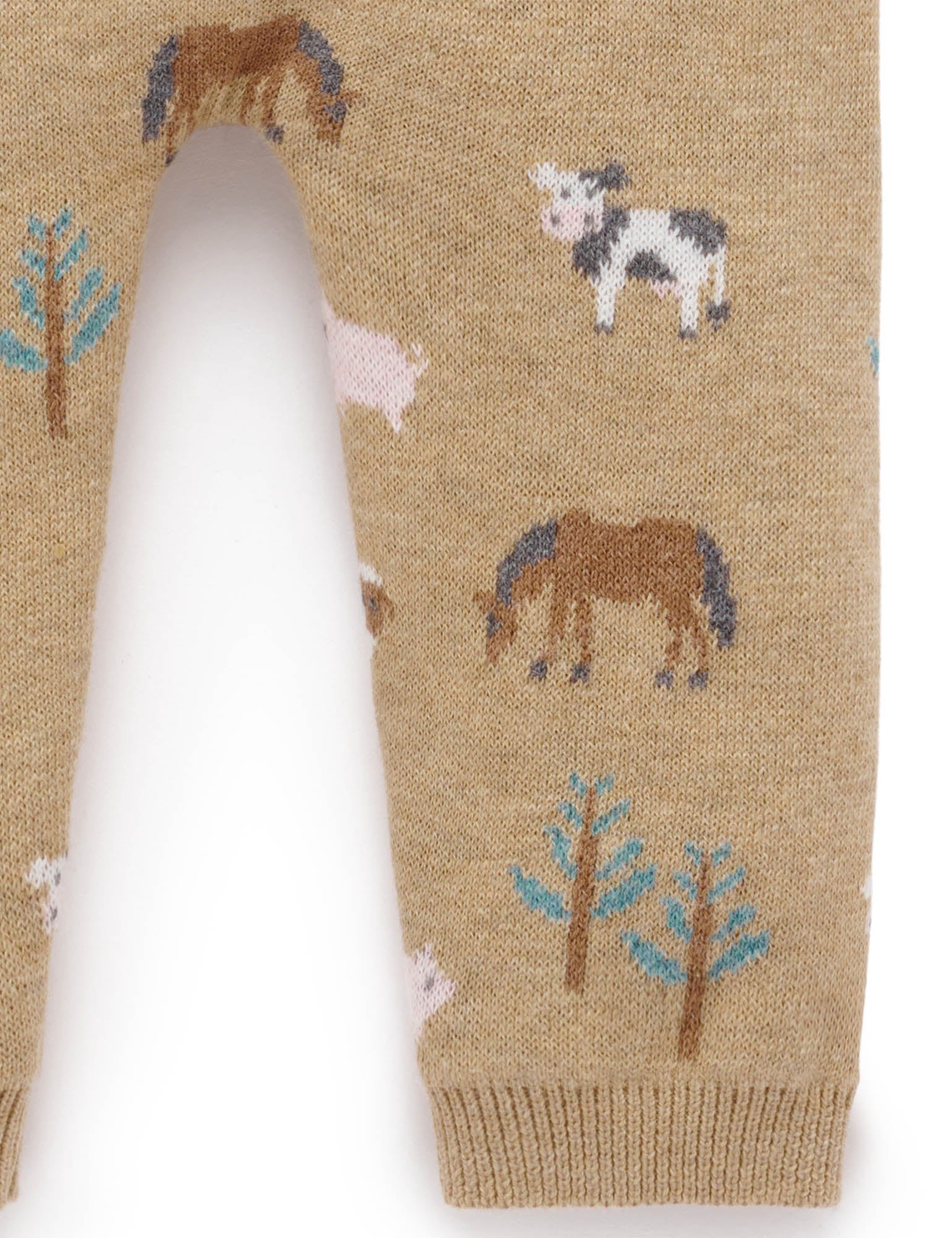 Get your little one ready for the farm with our On the Farm Leggings! Not only will they keep those legs warm and cosy, but they also feature an all-over farm themed jacquard design. Made from organic cotton and wool blend, these leggings are both warm and snuggly. Plus, the elastic waistband and ribbed cuffs make them comfortable and easy to wear.