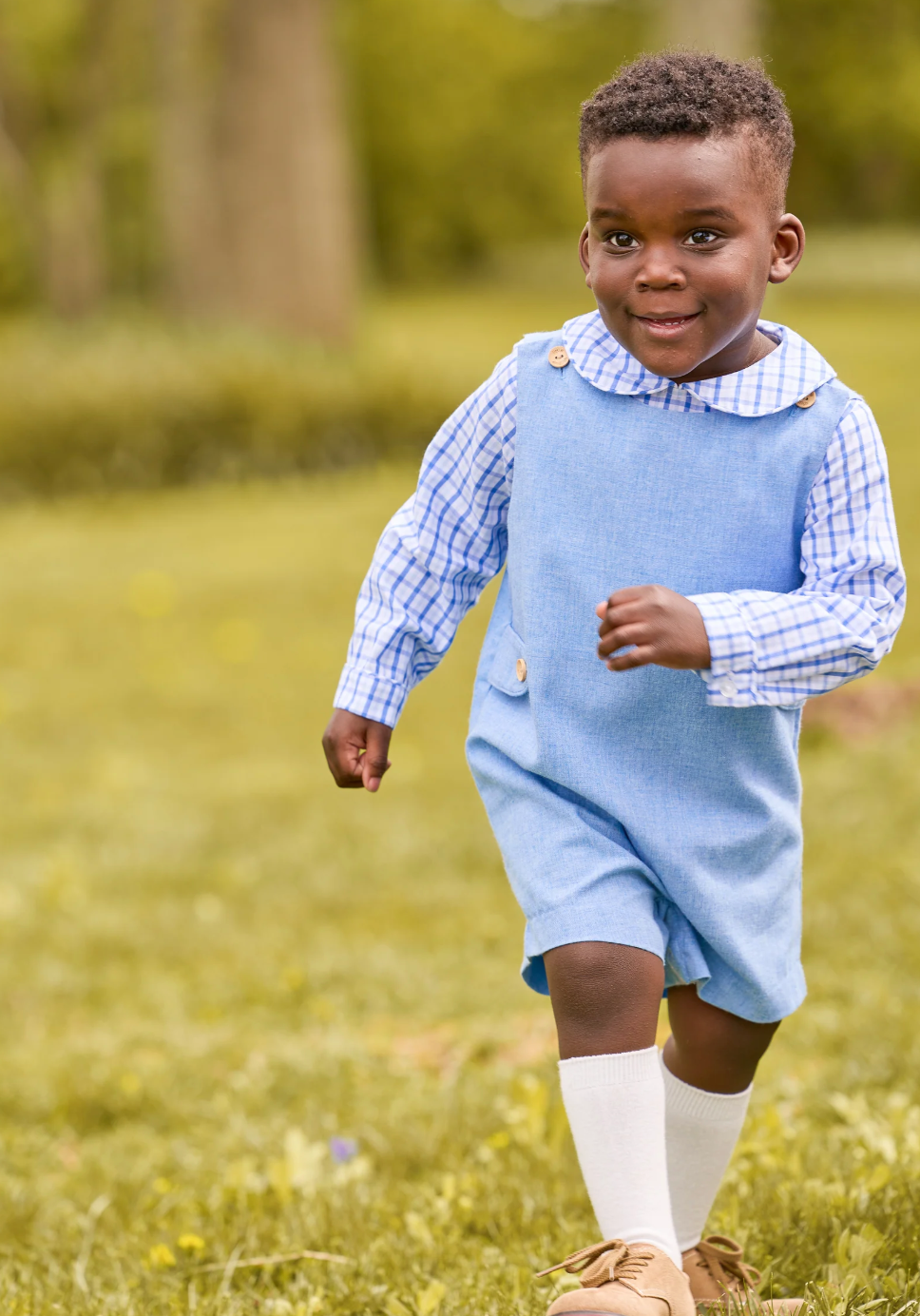 The Peter Pan Shirt in Woodberry Plaid brings cozy charm with its rich blue plaid and classic smocking. Made from soft Alaskan Flannel, it’s a playful and timeless choice for little boys, perfect for fall adventures and family photos. Pair it with coordinating pieces for an effortlessly adorable look all season long.