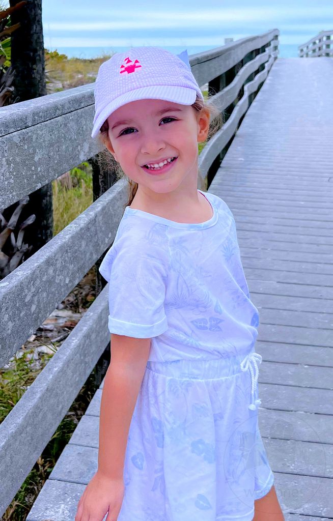Pink Castle Embroidered Seersucker Baseball Cap