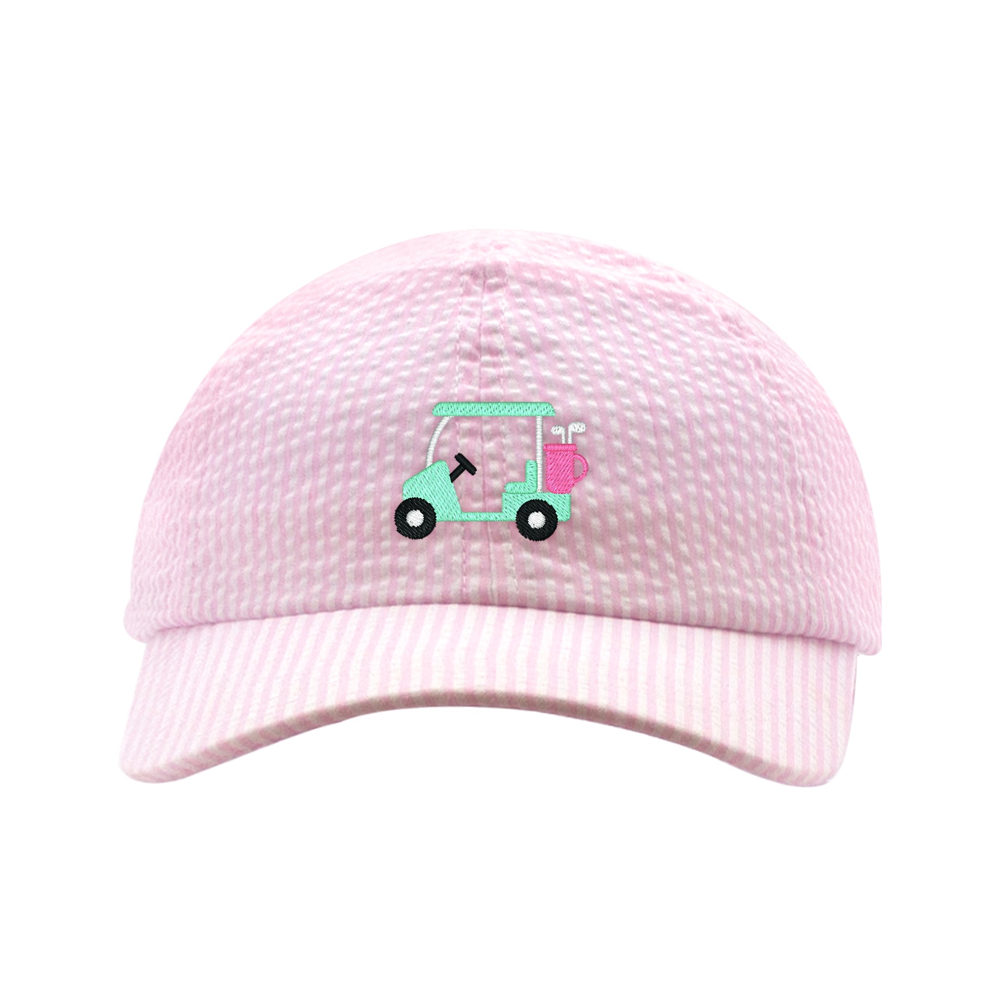Pink Golf Cart Embroidered Seersucker Baseball Cap