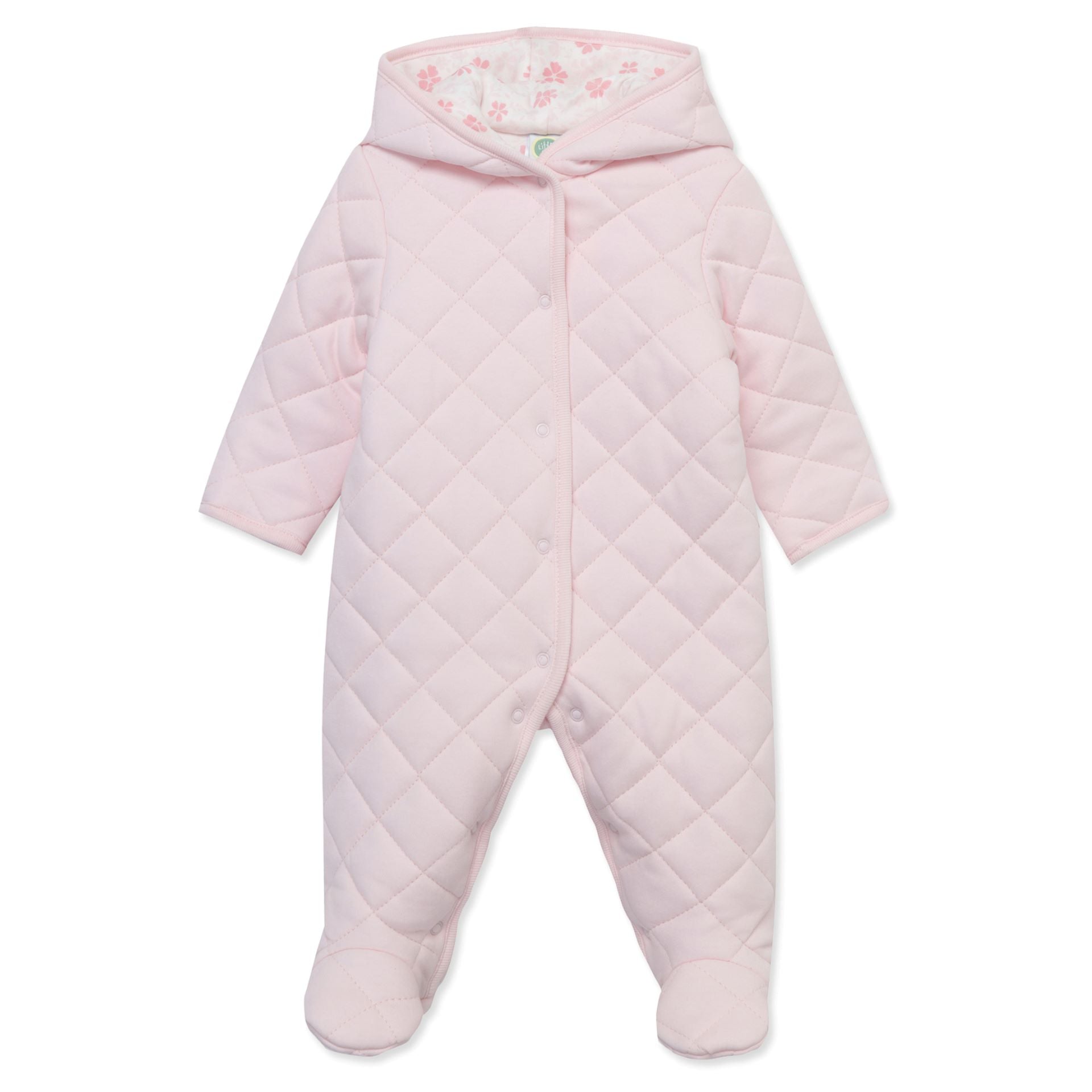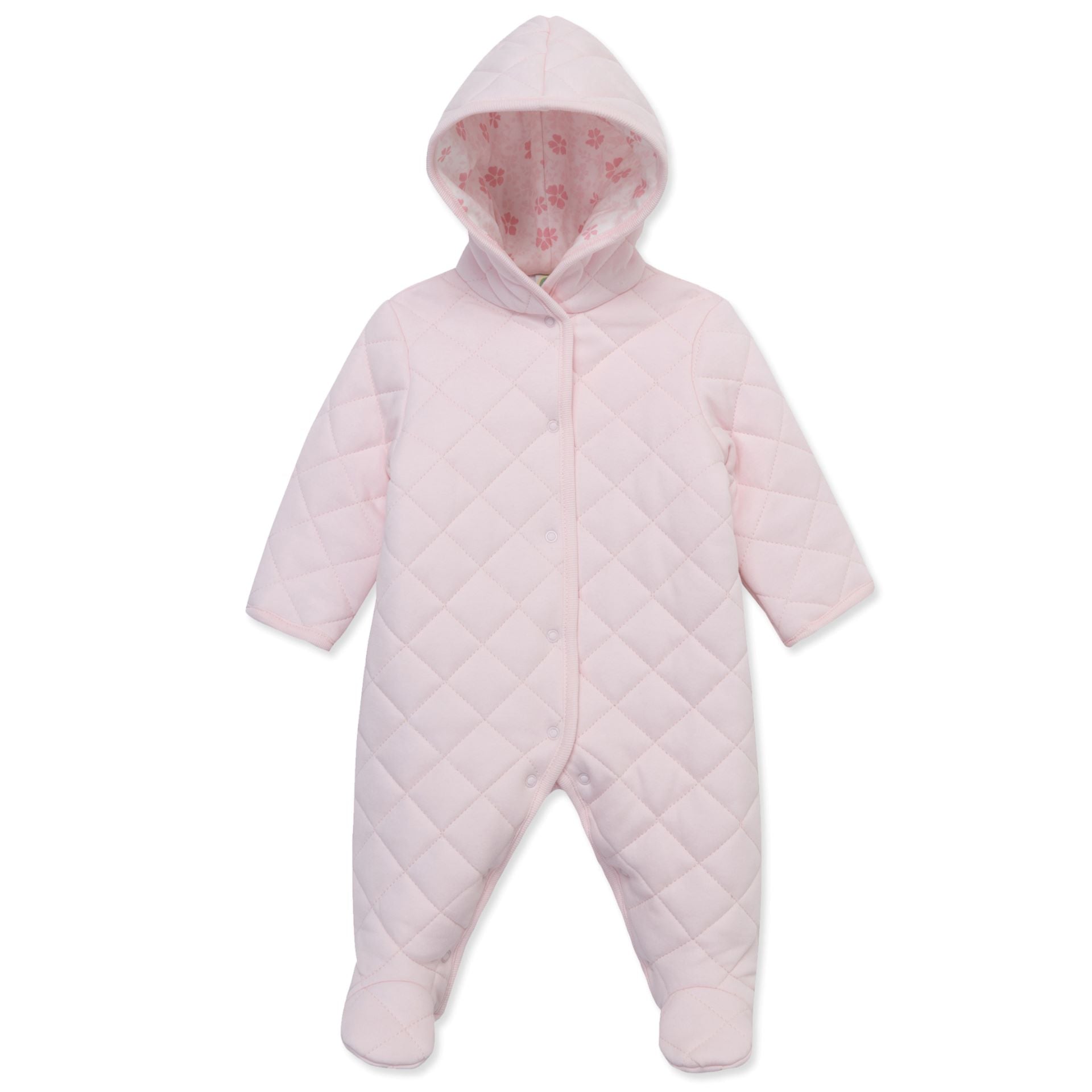 The little details: Snaps up the front from leg to neck. Attached hood.