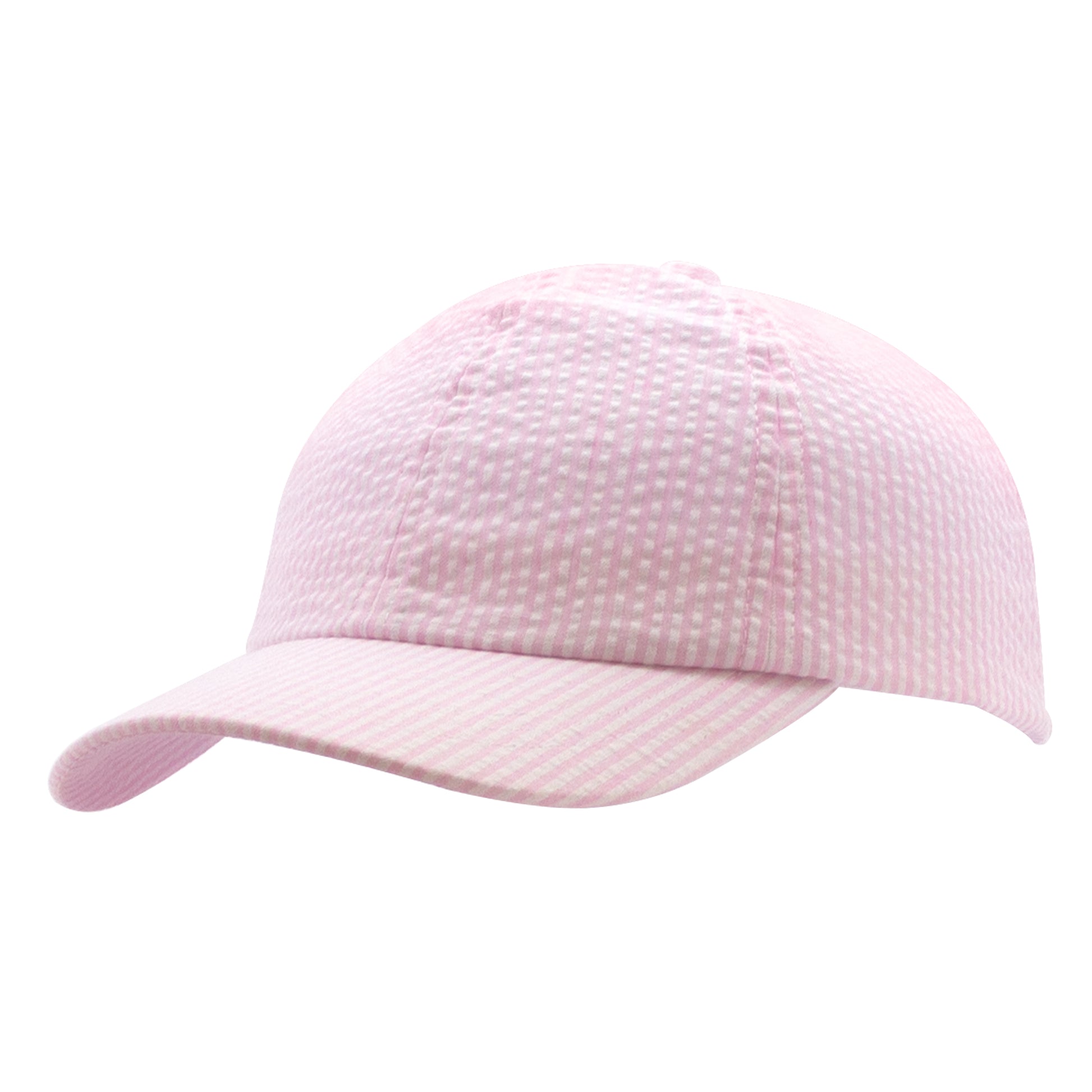This Seersucker ball cap is the perfect way to keep your little one from getting too much sun while still letting them have some fun! With UPF 50+ protection, this cotton-poly blend seersucker baseball hat helps ensure your little ones stay safe in the sun. They'll look so cute and stay comfy too! This cap features an add a bow slot in the back.