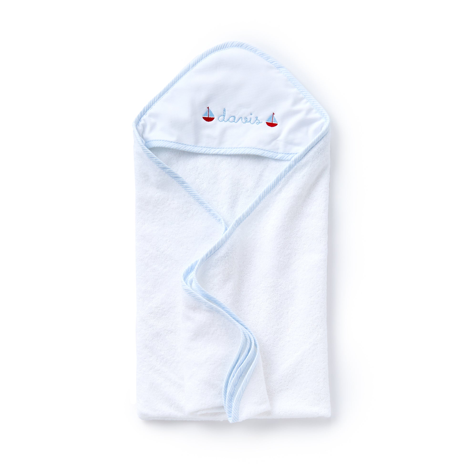 Hooded Towel, Blue Seersucker Trim
