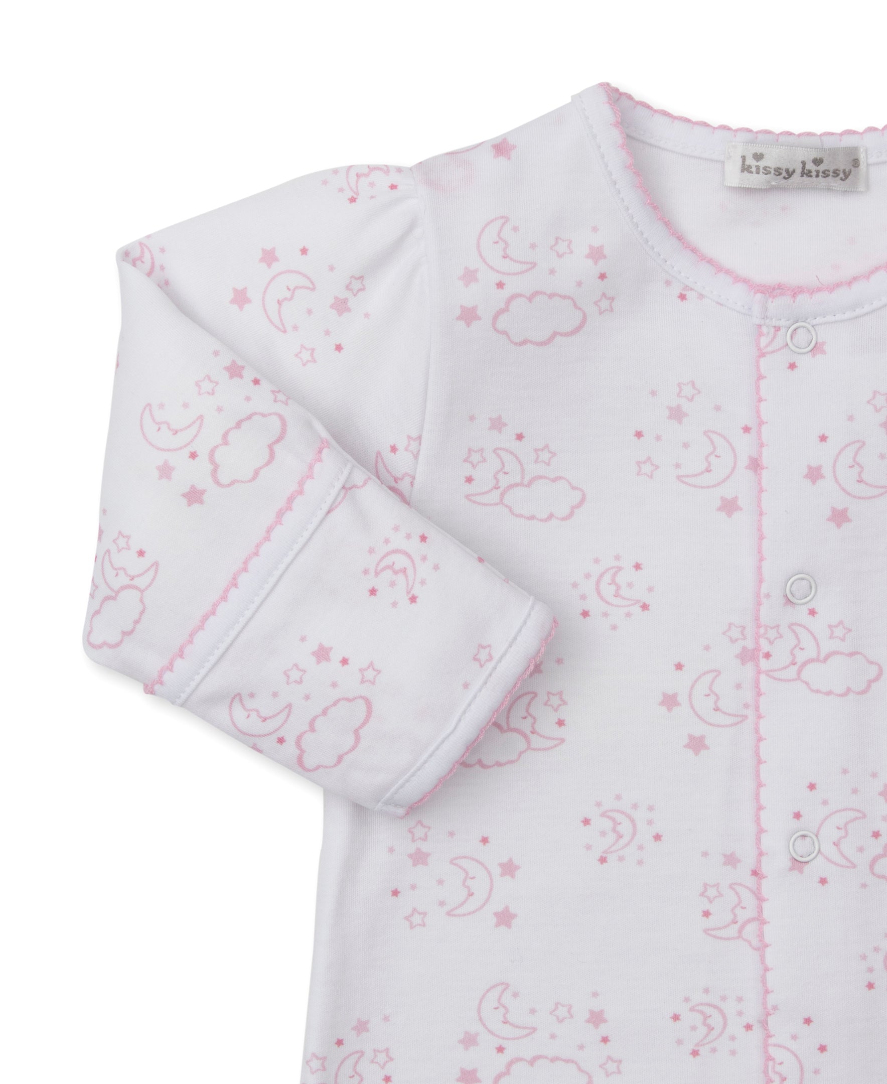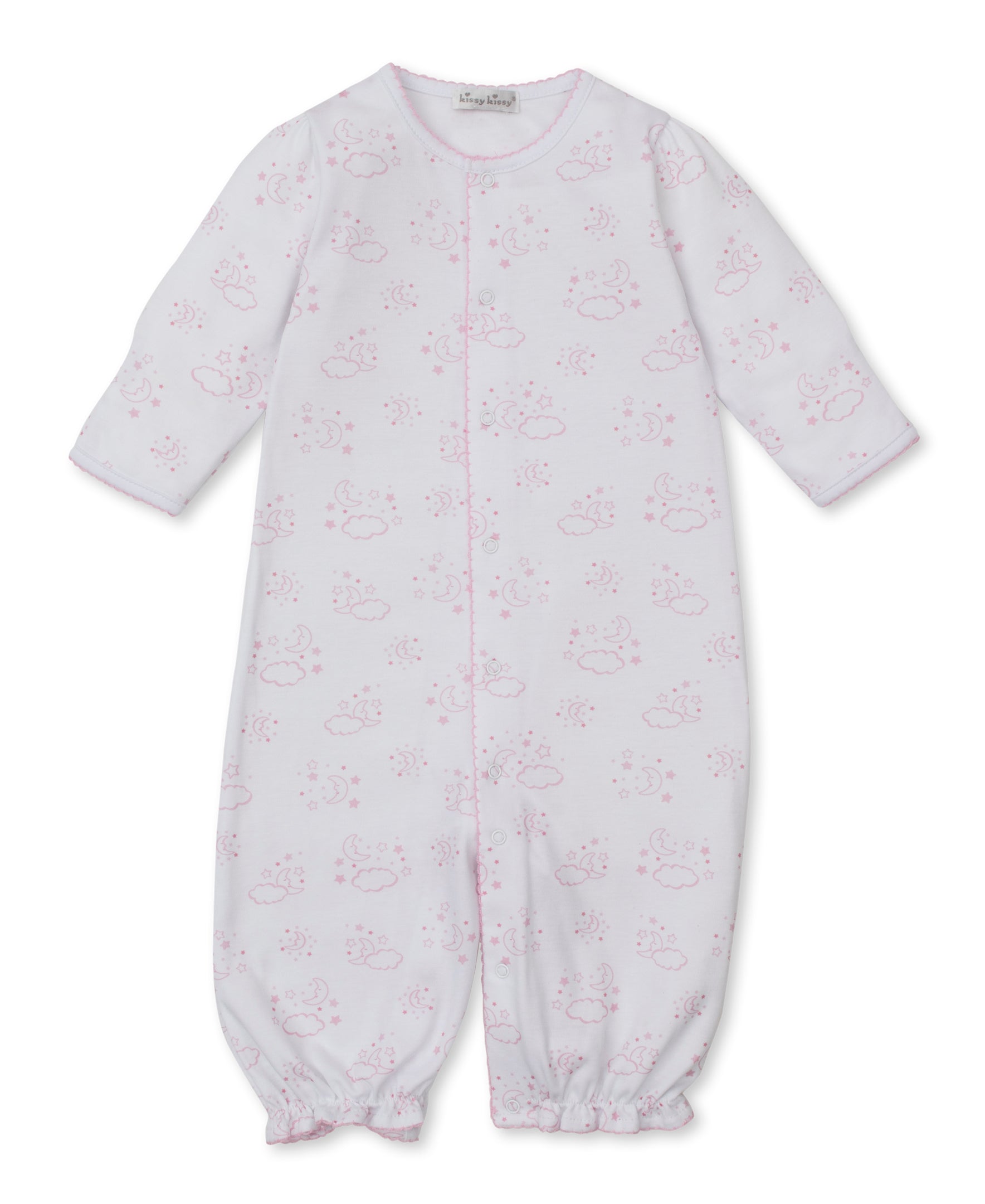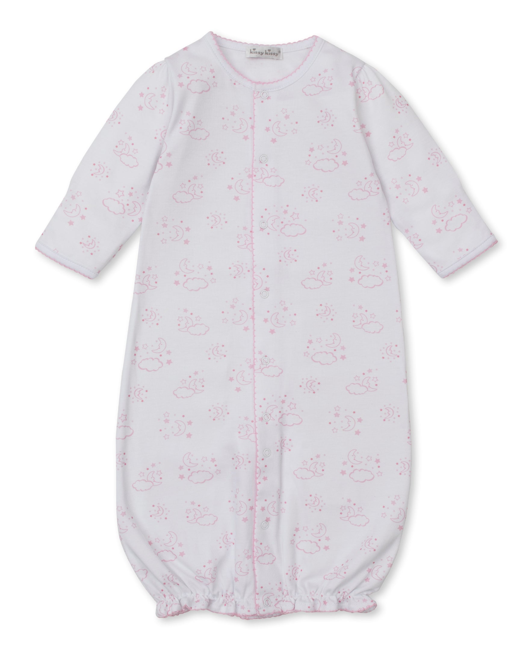 Wrap your little one in cozy comfort with this playful converter gown featuring charming white and pink moons and clouds. Perfect for easy diaper changes, its soft fabric keeps baby snug and happy all night long. Sweet dreams start here!