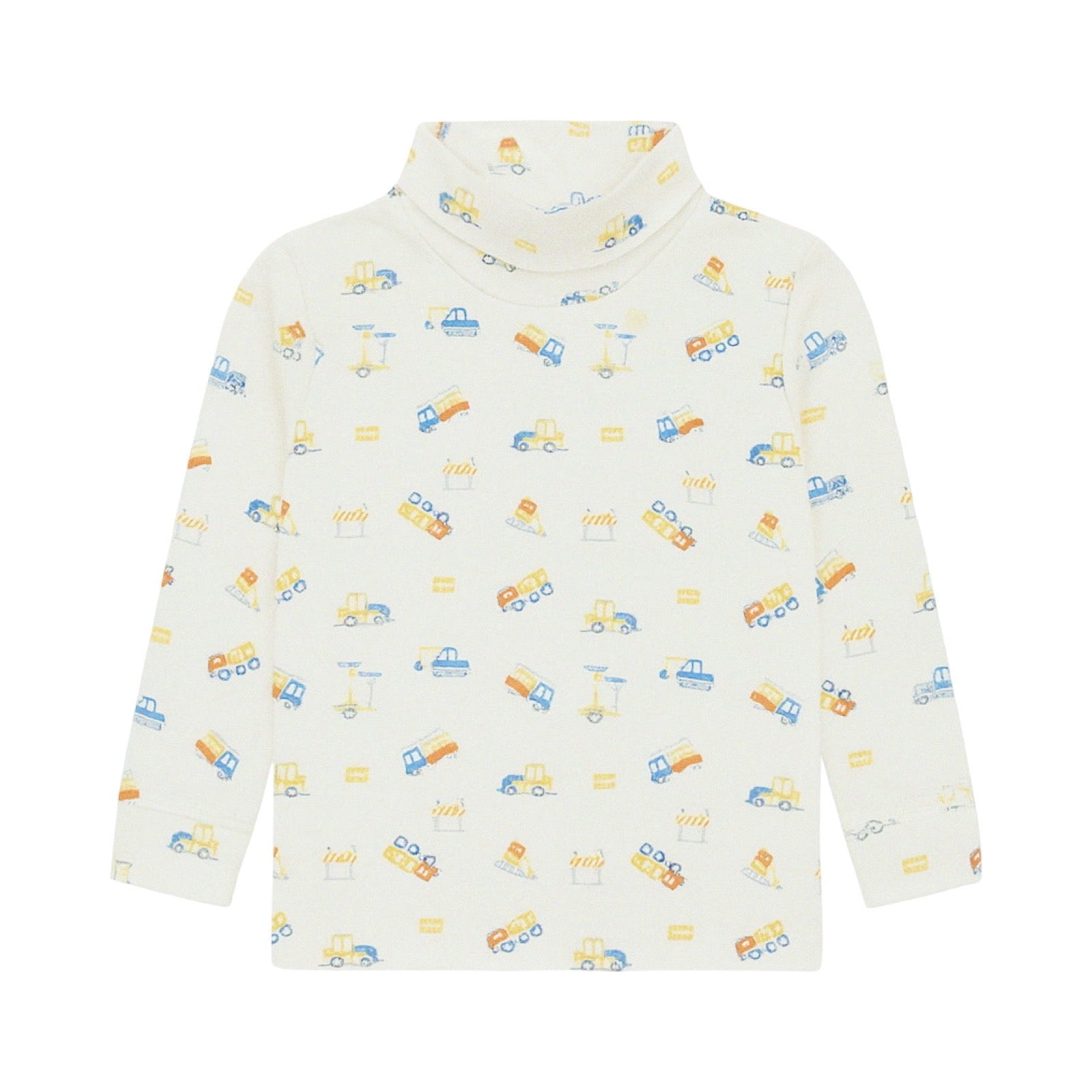 Keep your little one cozy and stylish with this playful cotton turtleneck featuring a playful construction site print. Soft and comfortable, it's perfect for active days and adds a fun, colorful touch to any outfit.