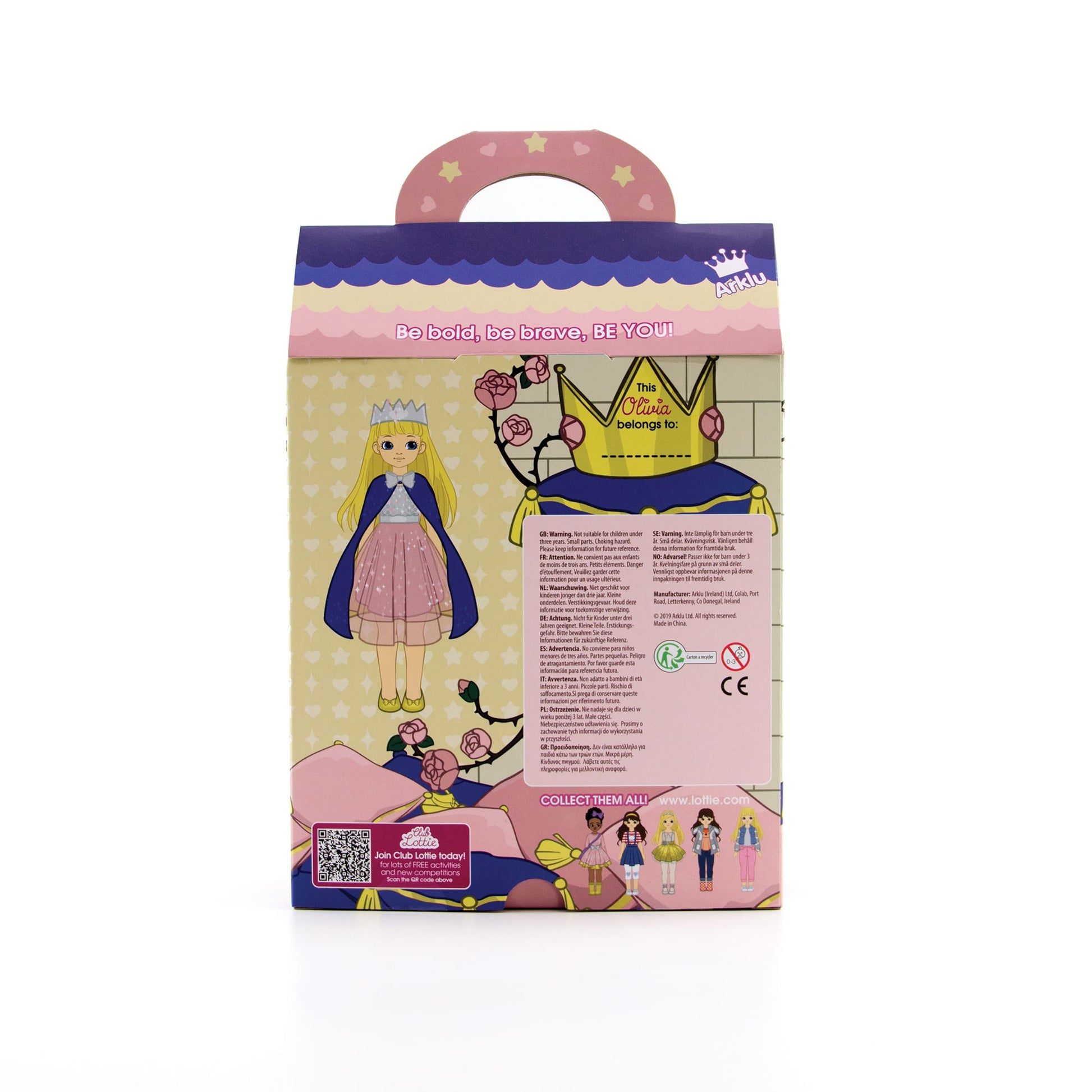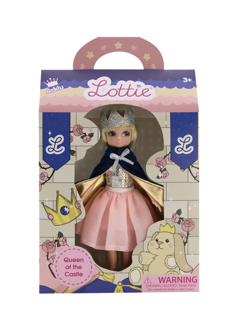 A darling little companion and first doll. Let your little one create their very own world of pretend play with Queen of the Castle Lottie. She inspires kids to dress up and step into their imaginations with her sparkly top, pink tutu, dark blue cape, and glittery silver crown. This doll is sure to spark your little one’s wildest, whimsical dreams!