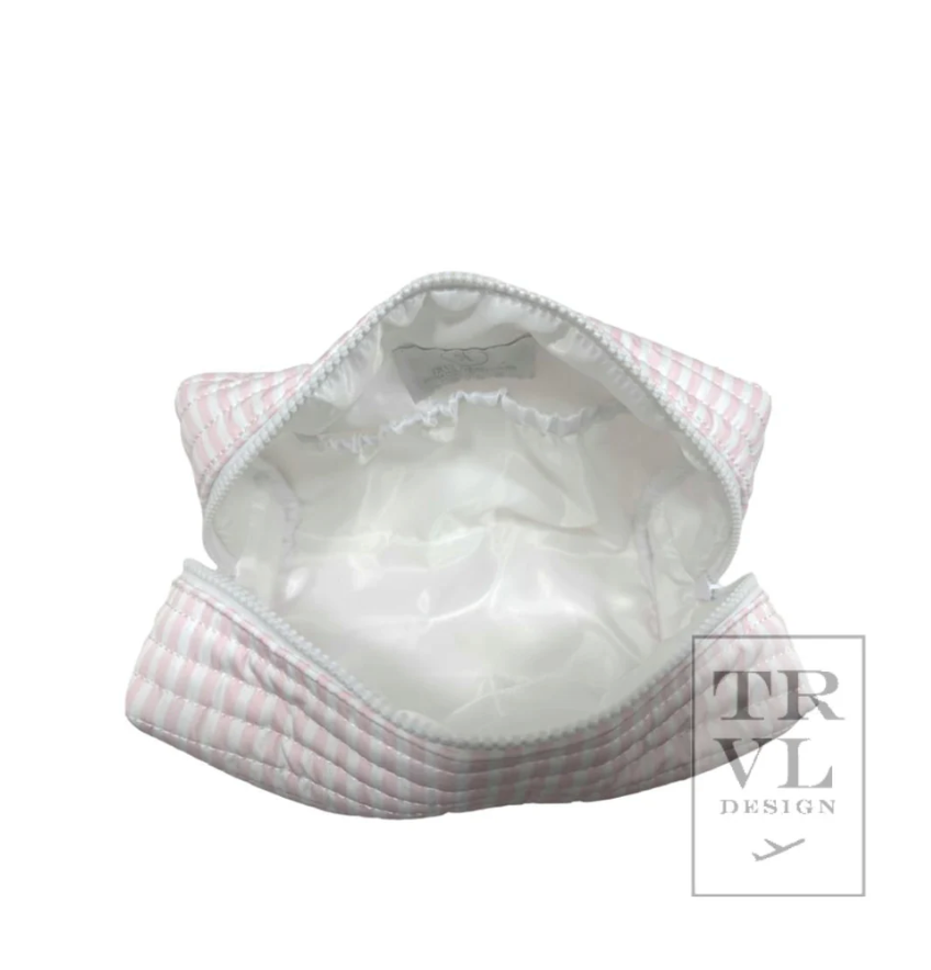 Perfect for everyday use. This ultimate large, soft, lightweight quilted zippered pouch is ideal for diapers, wipes, toiletries, cosmetics and everything in between. This style is designed to stand on its own and has an interior pocket for smaller needs. Both functional and beautiful, this would be a great addition to the quilted diaper bag and it is wipeable inside and out and machine washable.