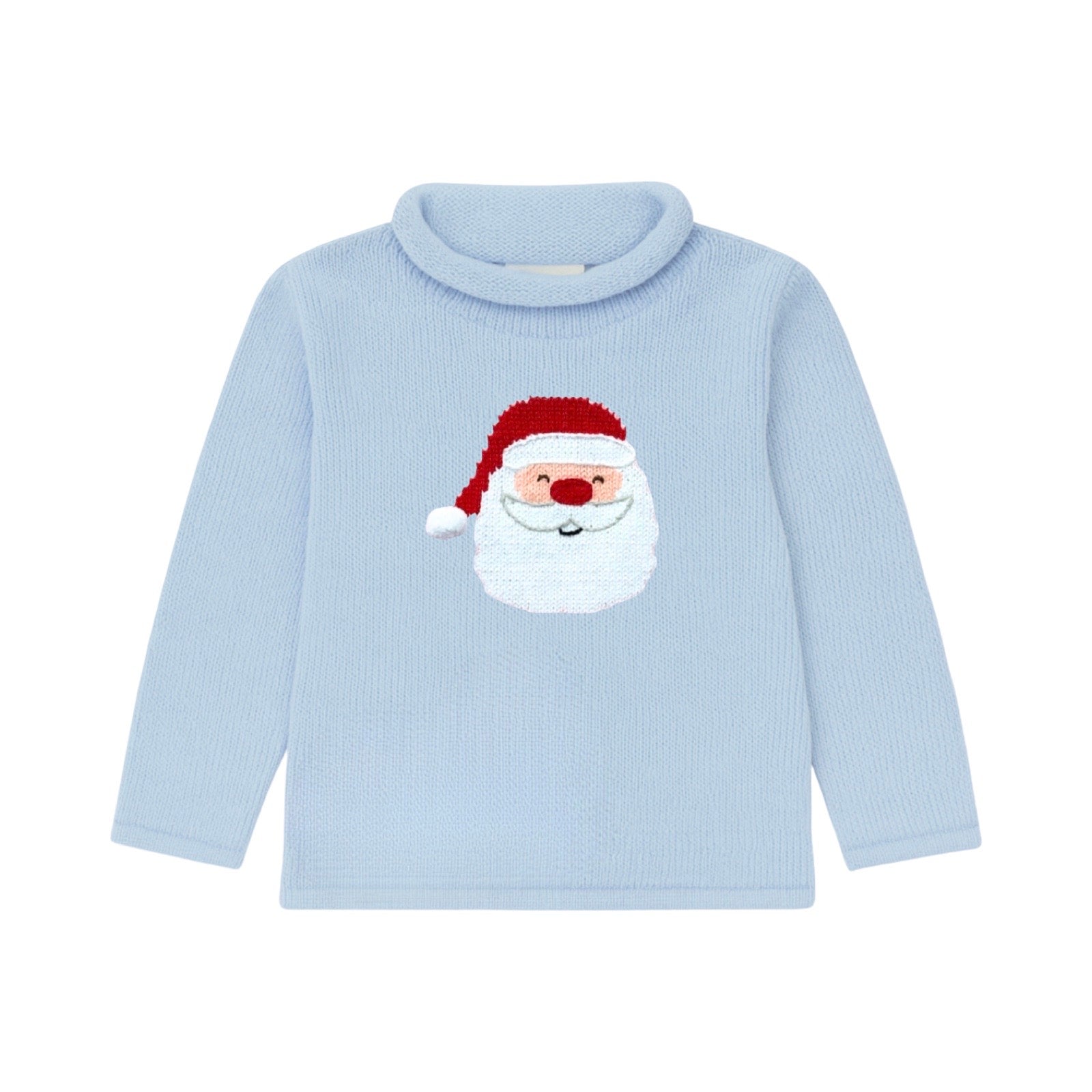 This sky blue rollneck sweater features a cheerful Santa face, perfect for adding a playful holiday vibe to any outfit. Cozy and festive, it’s an ideal way to celebrate the season in style and comfort.