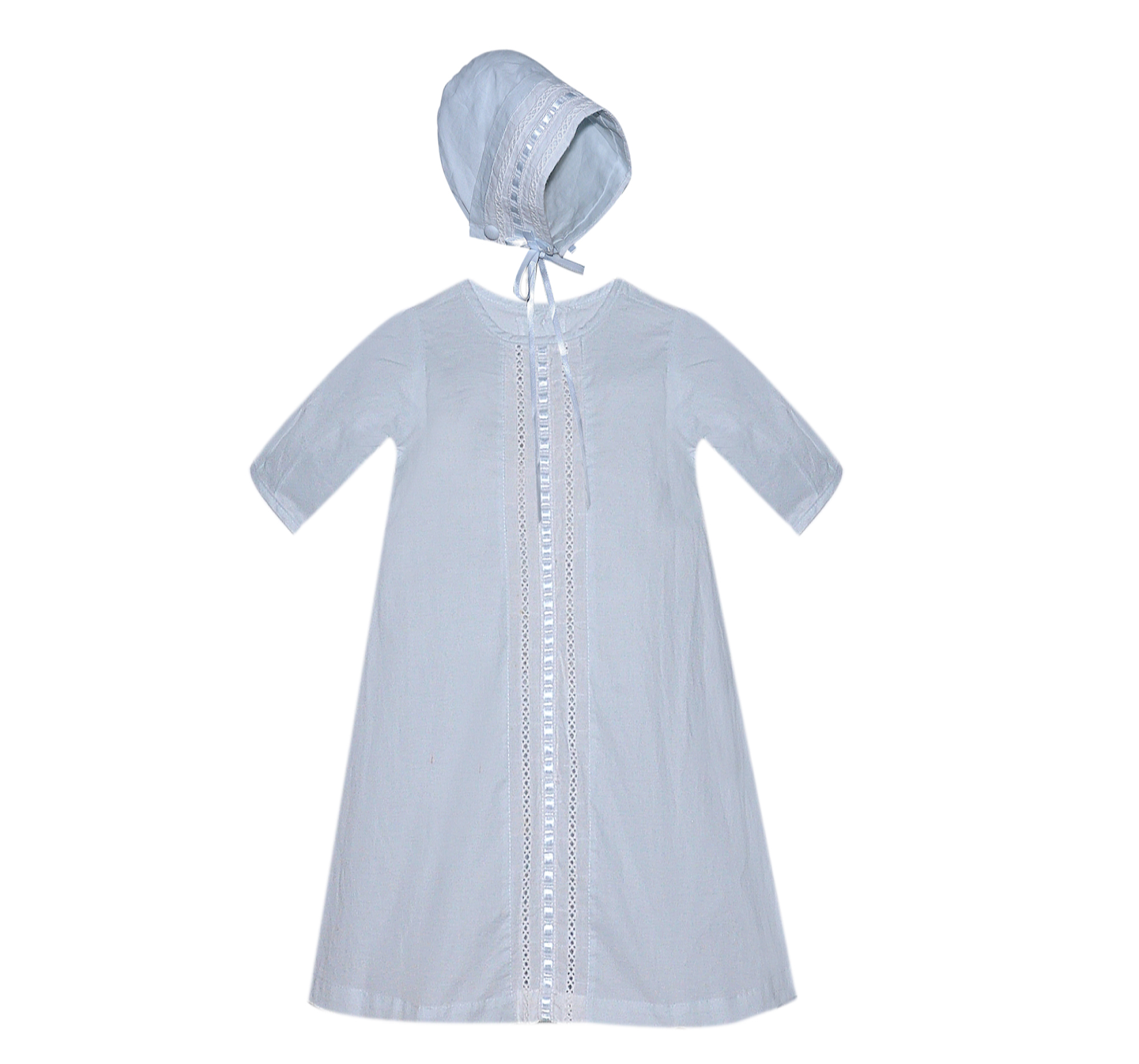 This darling daygown is sure to be the sweetest addition to your little one's wardrobe! The delicate lace trim adds a touch of elegance, while the coordinating bonnet completes the adorable look. Perfect for special occasions or everyday wear.