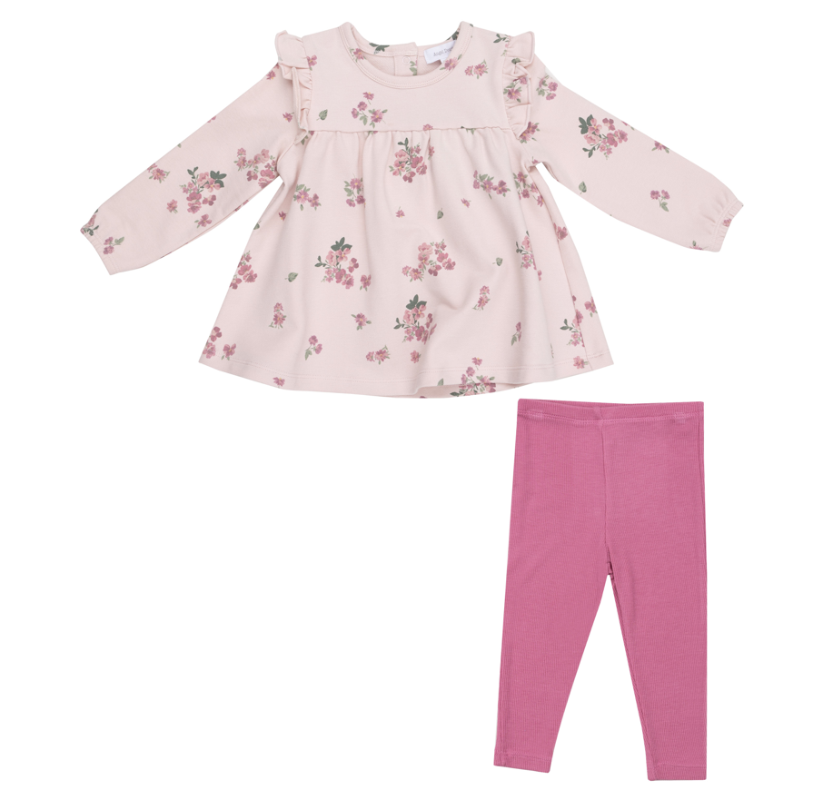 Ruffle Top Tunic & Rib Leggings, Pink Woodsorrel Floral